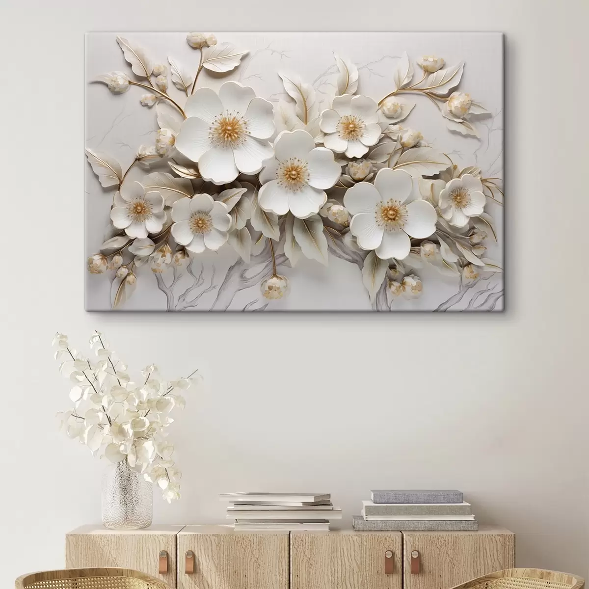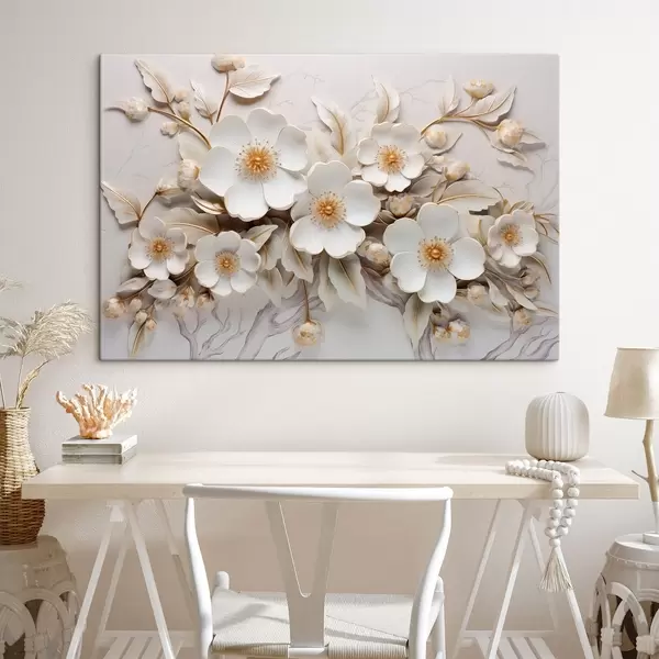 Peinture 3d fleurs blanches dans un style classique avec un accent jaune Art. s43313
