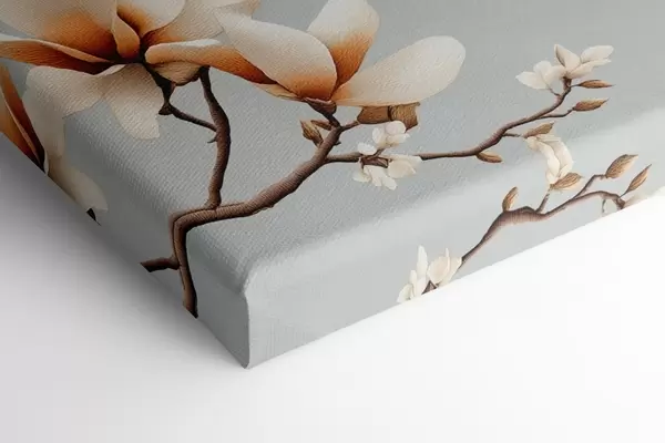 Peintures Oiseau sur une branche avec des magnolias dans des couleurs douces et pastel s43320