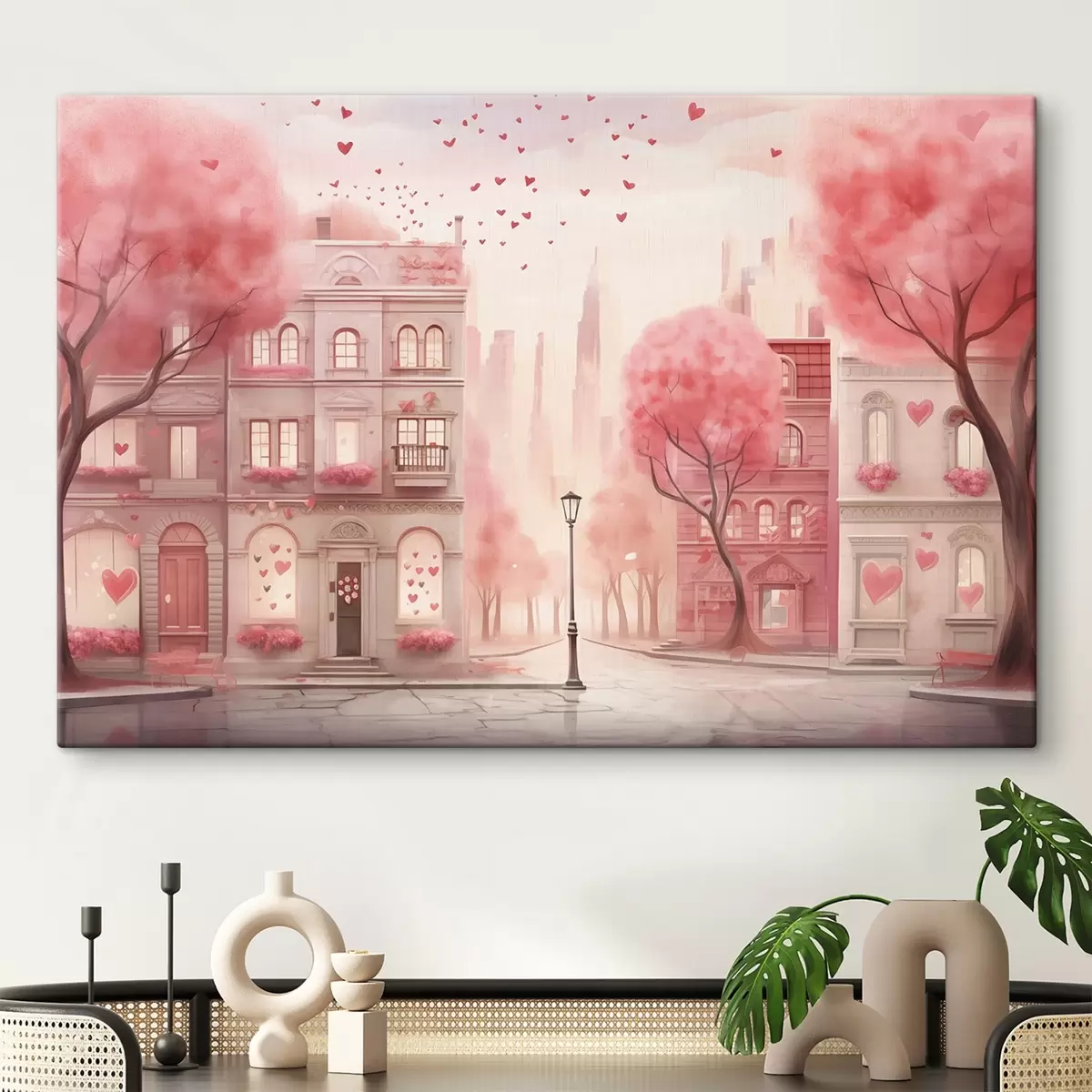 Peinture Rue romantique rose avec des cœurs Art. s43324