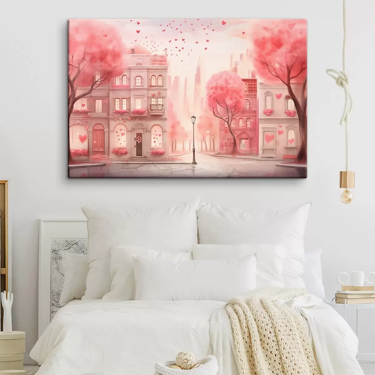 Peinture Rue romantique rose avec des cœurs Art. s43324