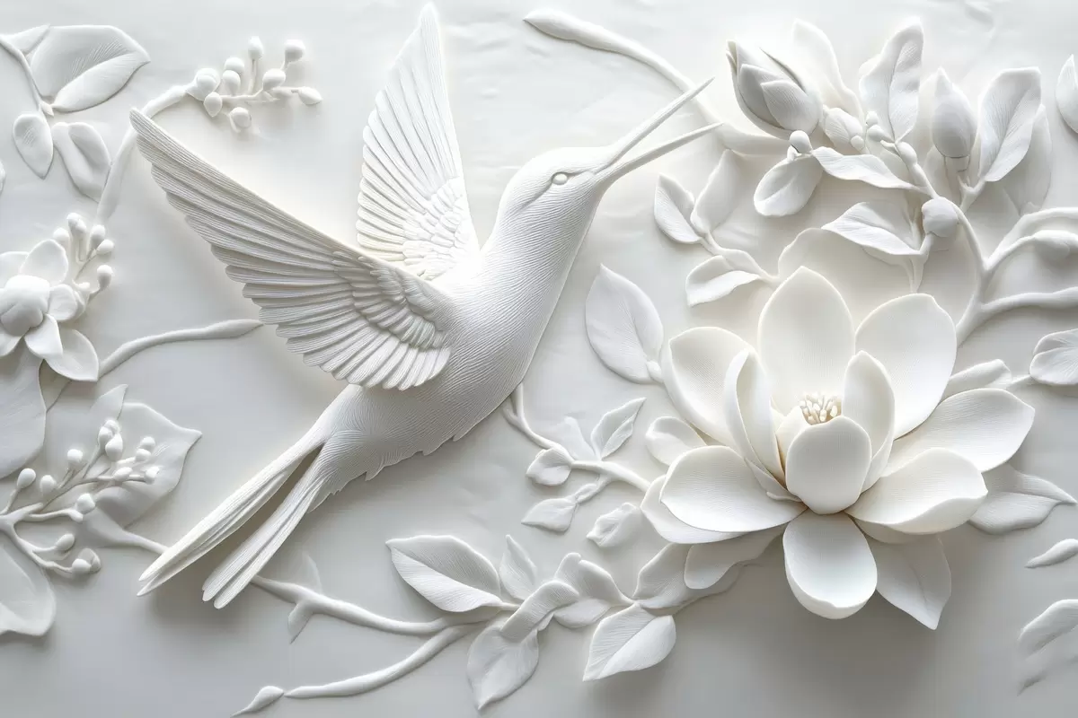 Peinture Image 3d en noir et blanc d'un oiseau et de fleurs environnantes Art. s43329