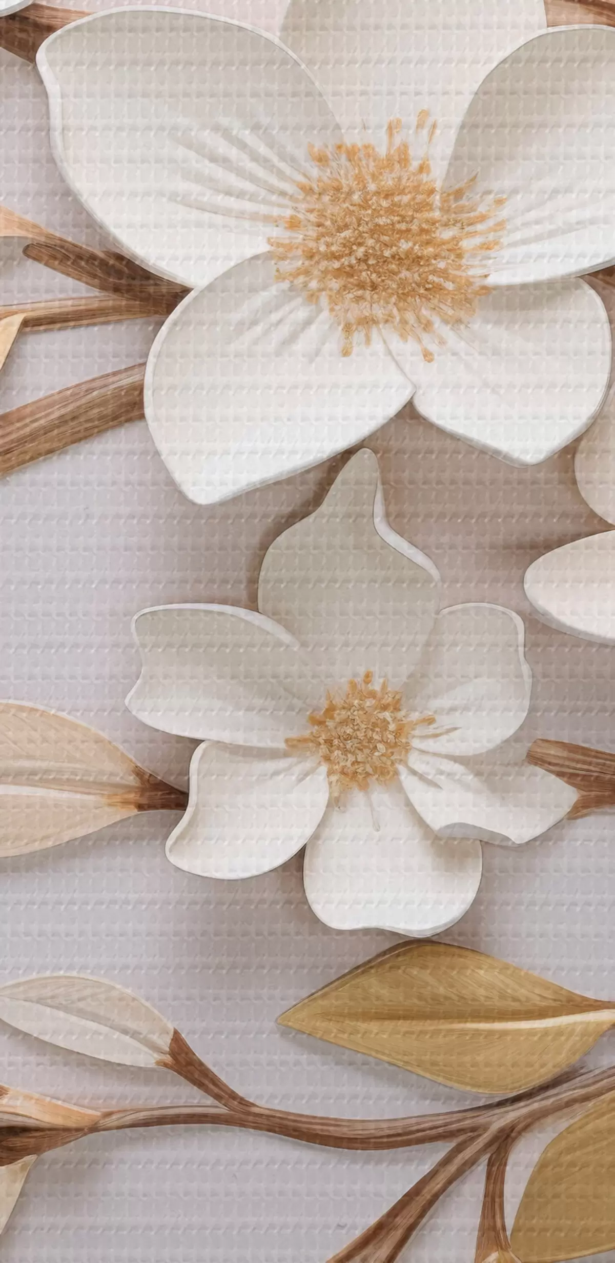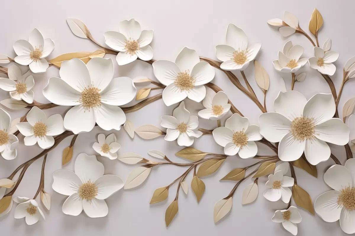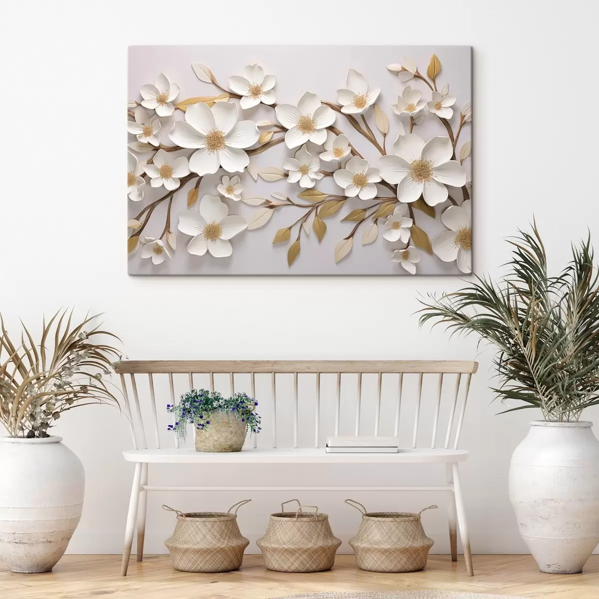 Peintures Fleurs blanches dans le style d'une fresque en relief avec des accents jaunes s43331