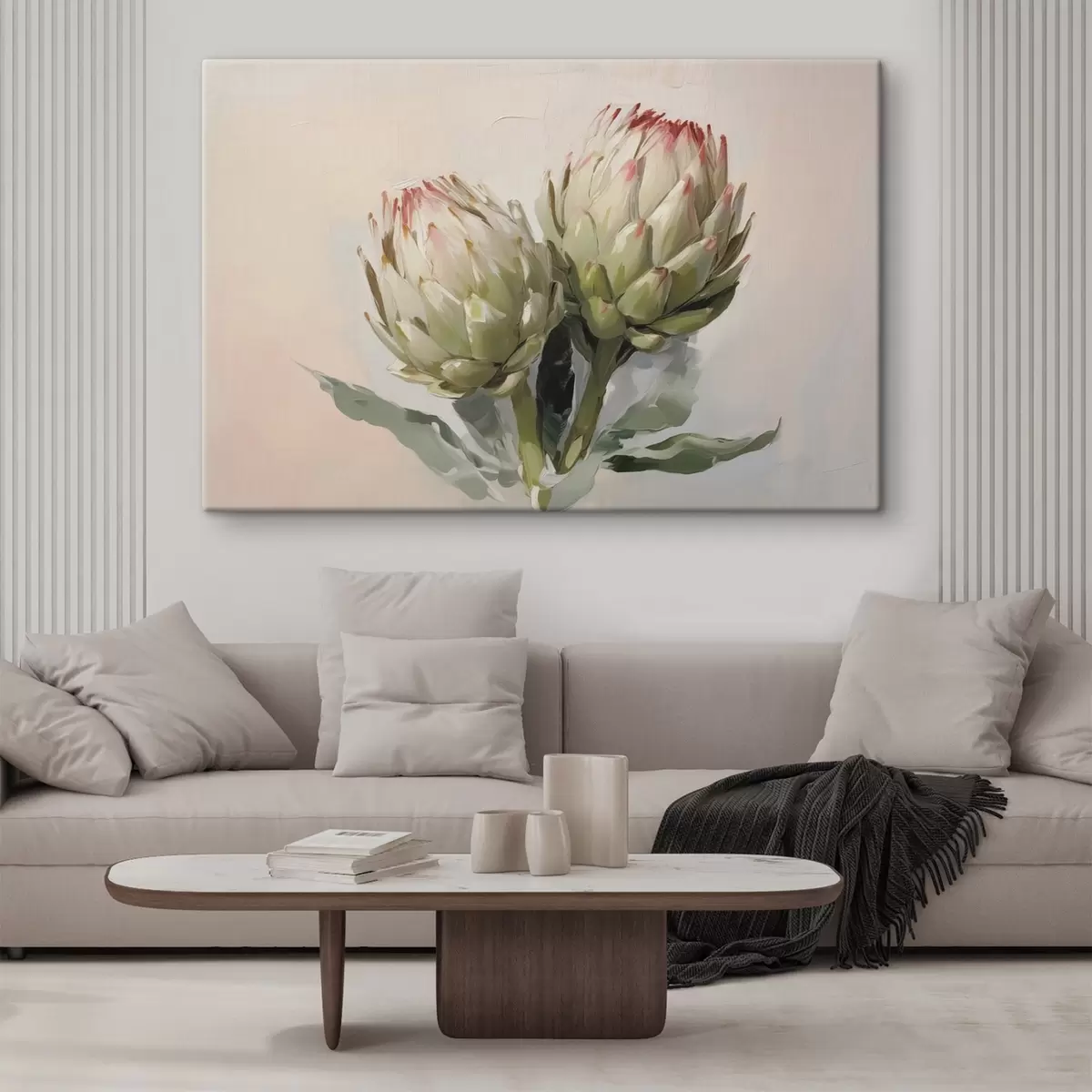 Trois types de matériaux peuvent être commandés : Economic Canvas - matériau dense et durable pour l'impression numérique, identique à la toile de peintre, surface imperméable, reproduction réaliste des détails, matériau à grain moyen. Premium Canvas - la texture ressemble à celle d'une toile de peintre (petits fils entrelacés). Reproduction douce et détaillée de l'image sur une surface mate. Eco-Premium - tissu 100 % coton de haute qualité. Grâce aux fibres naturelles de coton, le matériau est durable et résistant à l'usure. Excellente reproduction des couleurs et des détails.