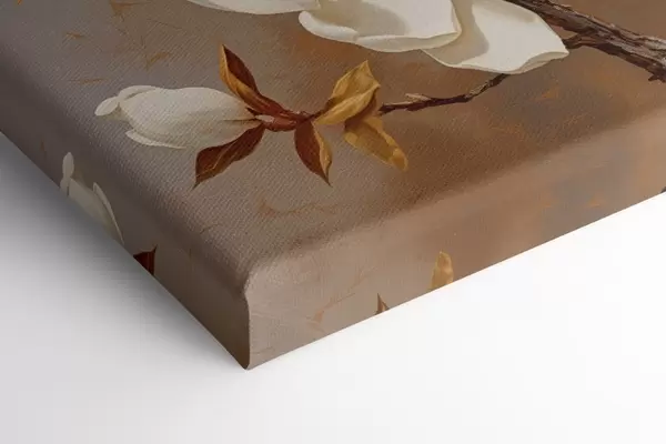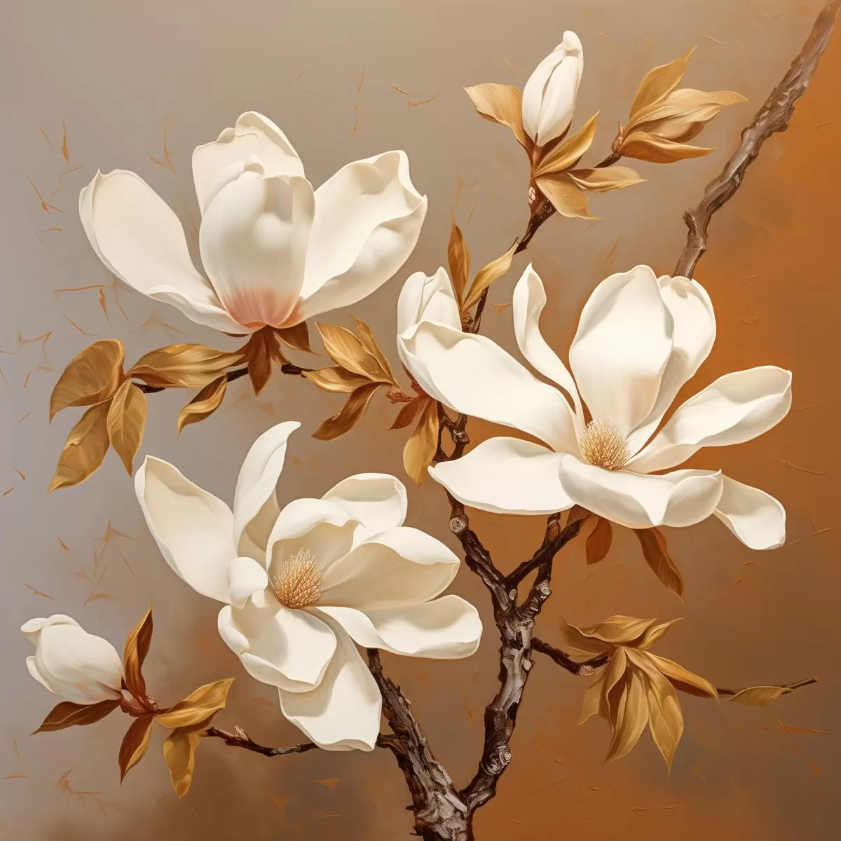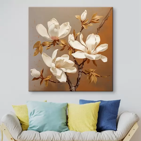 Peintures Peinture à l'huile avec un magnolia blanc sur une branche sur un fond jaune s43361