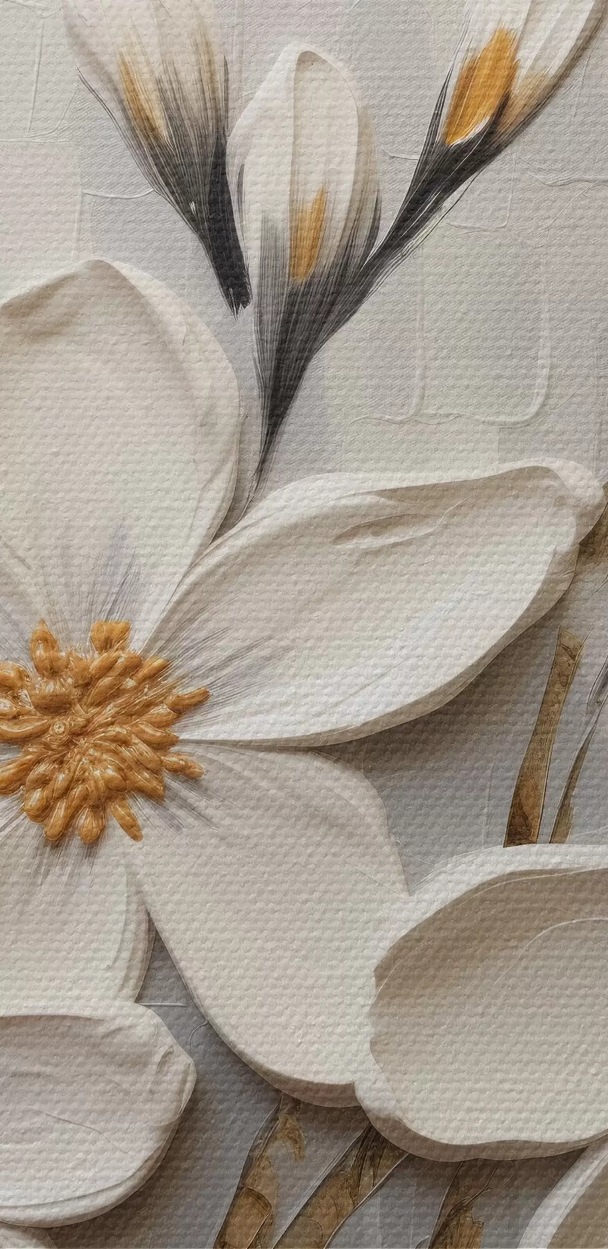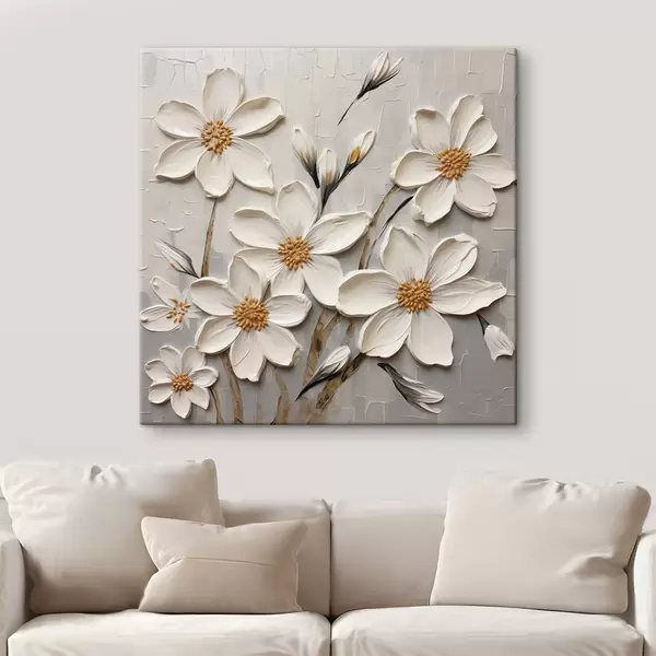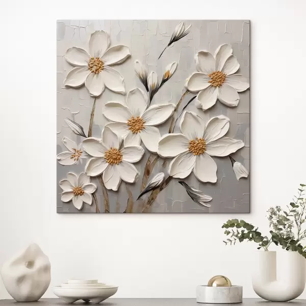 Peinture Fleurs blanches volumineuses dans un style de peinture avec de larges coups de pinceau Art. s43366