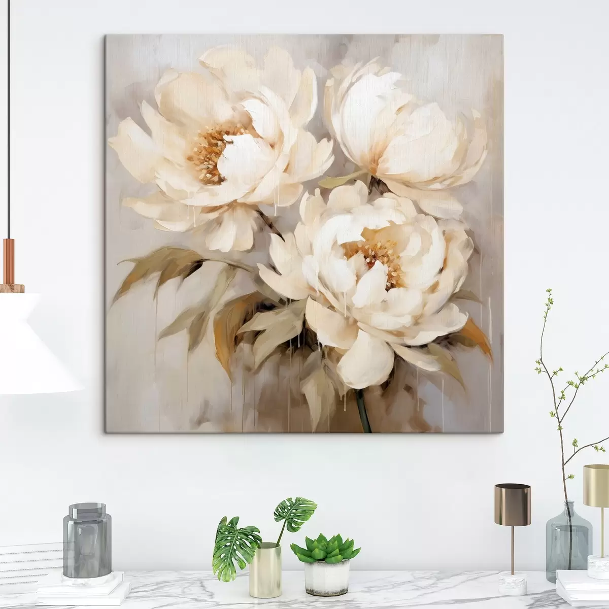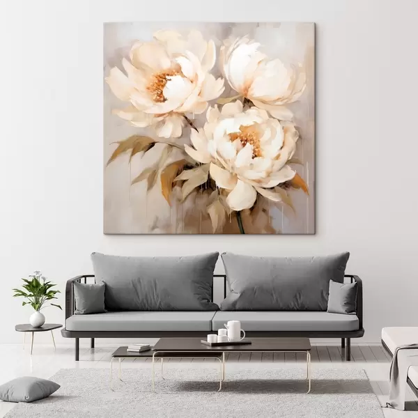 Peinture Pivoines délicates dans des tons neutres dans un style de peinture abstraite Art. s43387