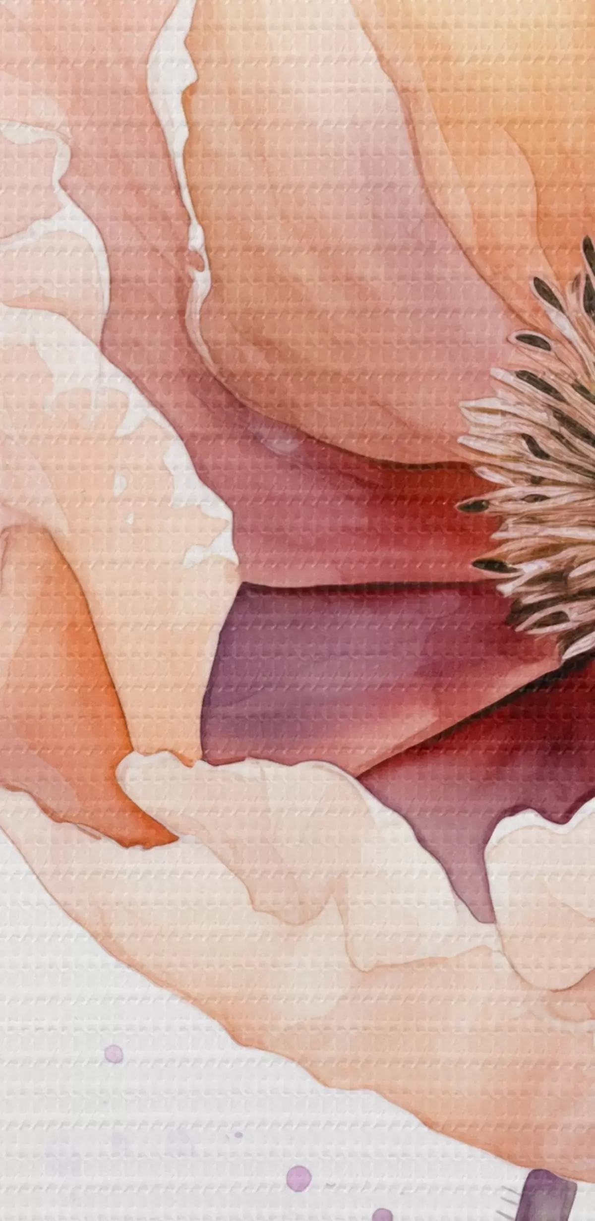 Peinture Fleur de pavot rose avec un bourgeon sur fond blanc, imitation peinture aquarelle avec coulures, couleurs douces Art. s43402