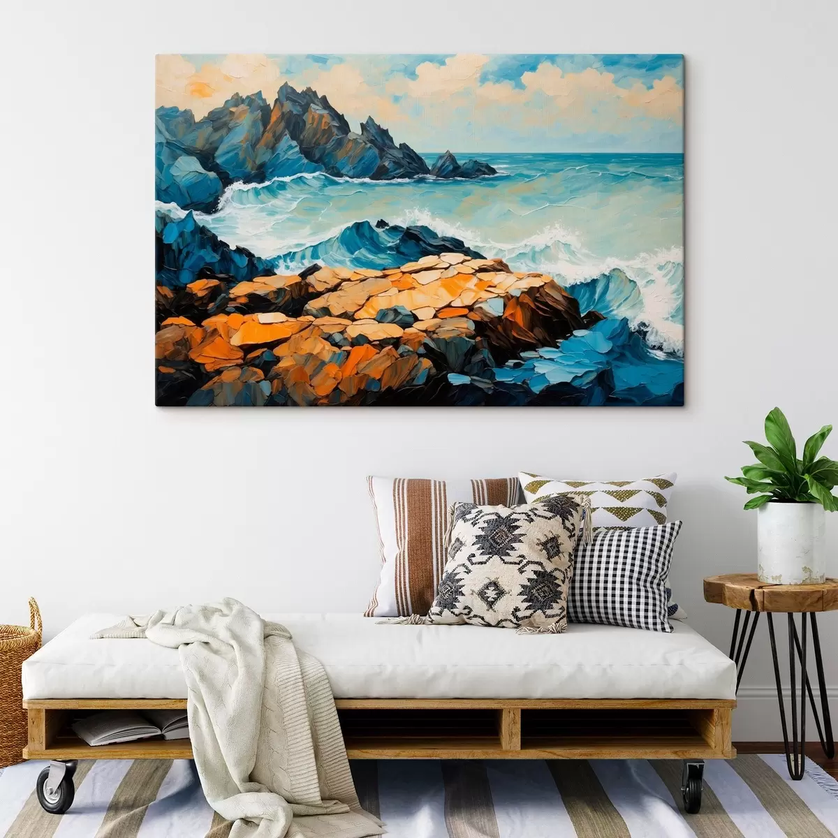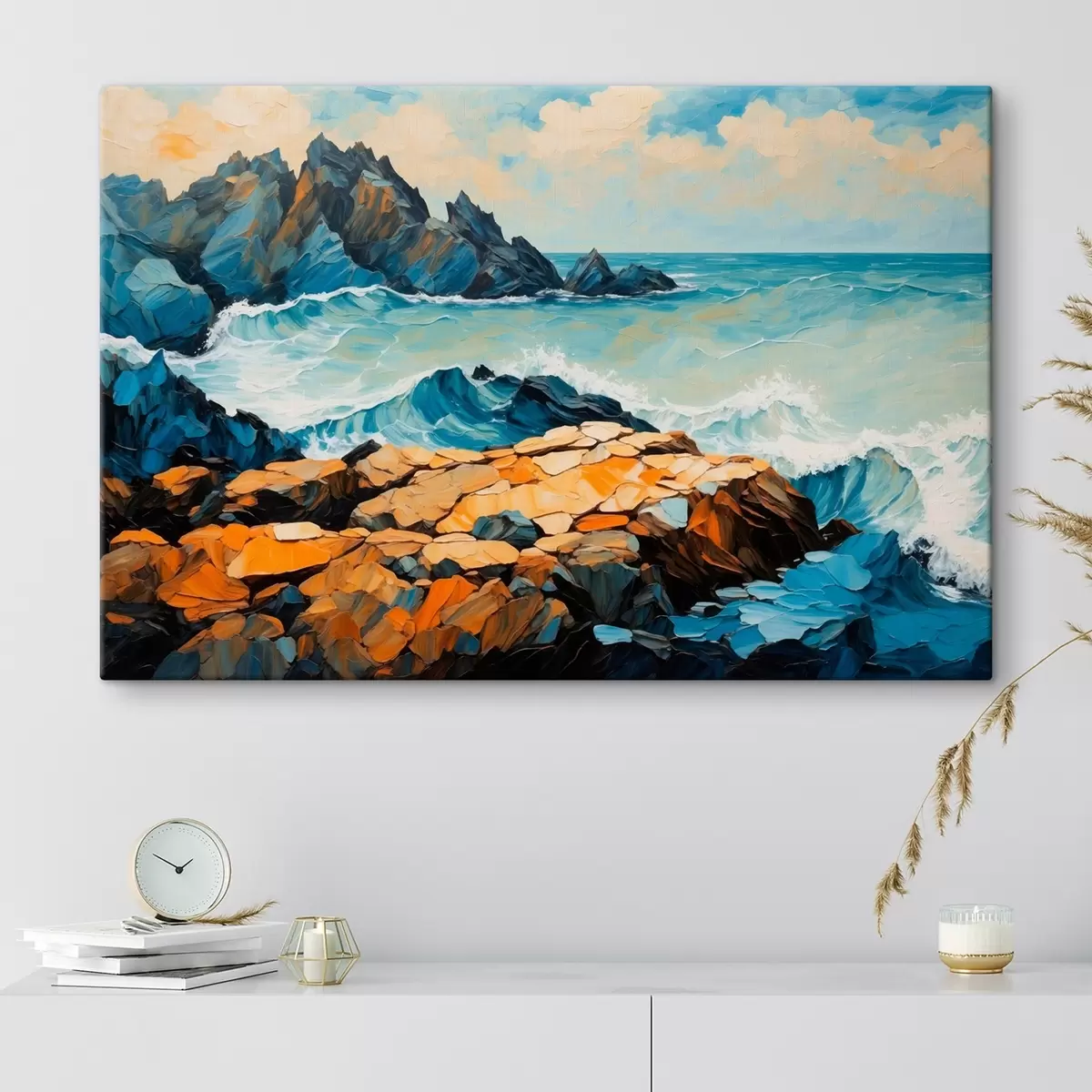 Peinture Les vagues s'écrasent sur les rochers Art. s43458