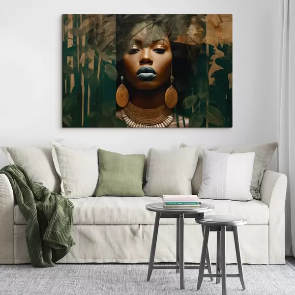 Peinture Visage de fille sur fond de forêt abstraite Art. s43466