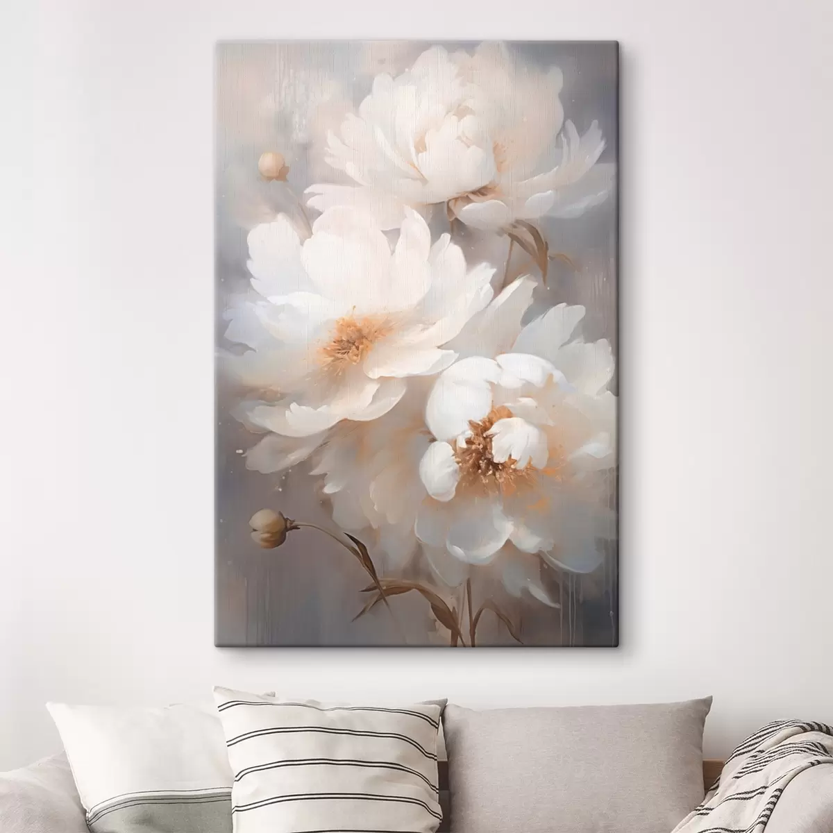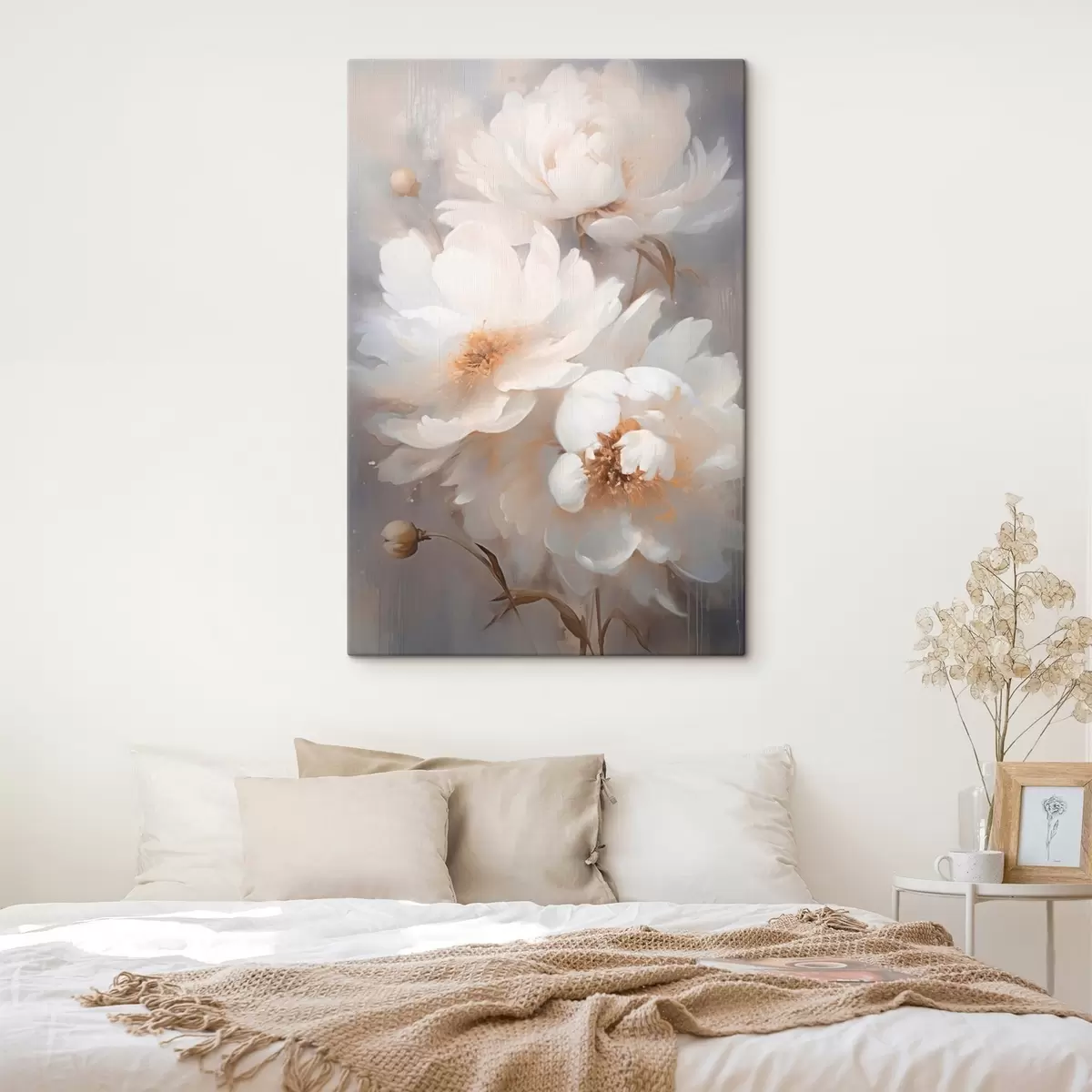 Peinture Fleurs et tiges blanches sur fond flou Art. s43473
