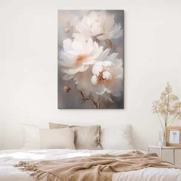 Peintures Fleurs et tiges blanches sur fond flou s43473