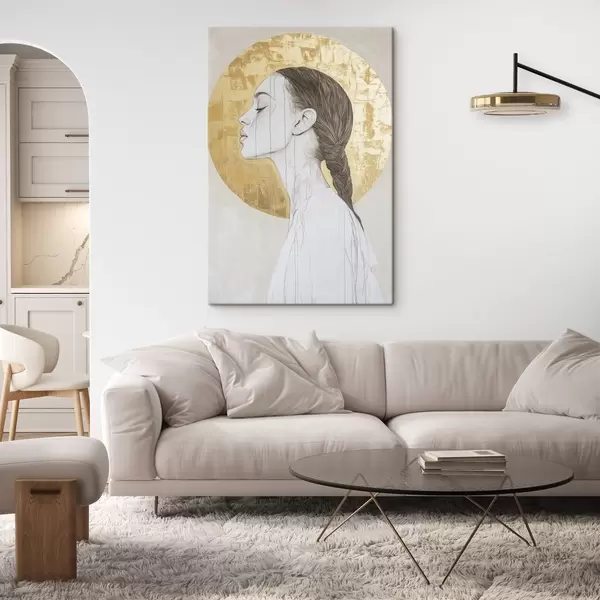 Peintures Portrait de femme, minimalisme, style acrylique, couleurs beiges s43504