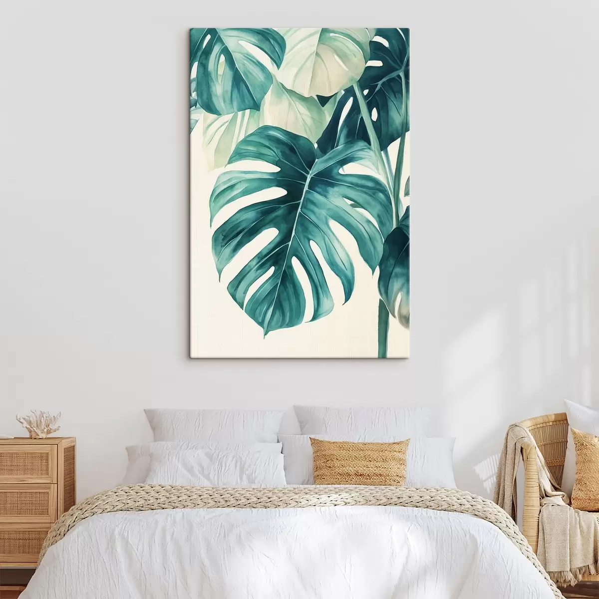 Peinture Feuilles de palmier Monstera, style aquarelle, floral, tropical Art. s43507