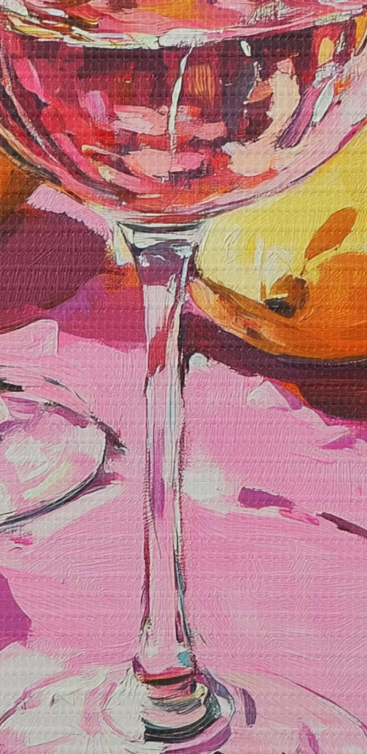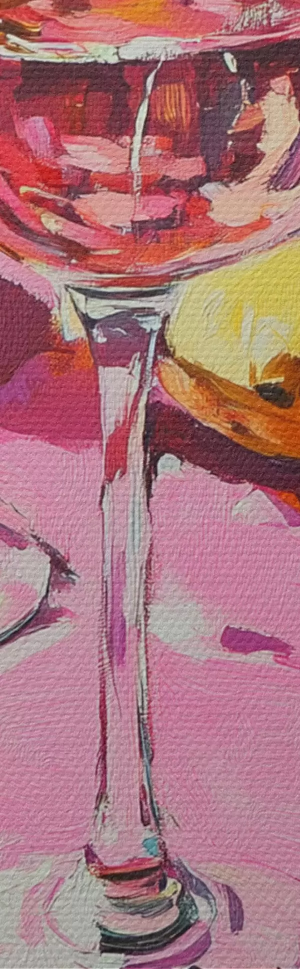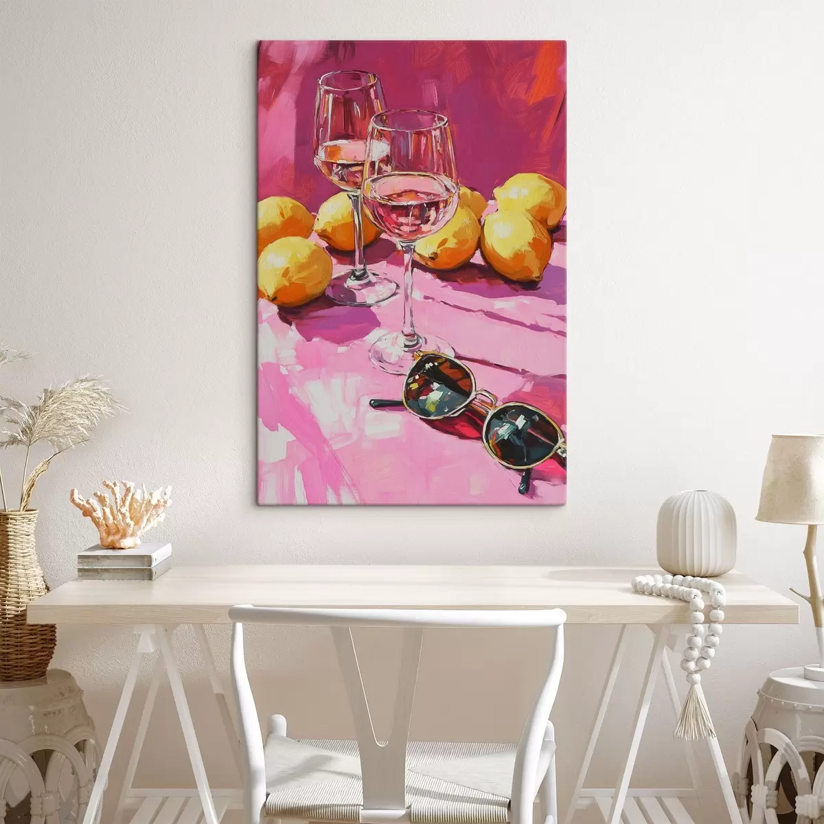Peinture Abstraction à l'huile avec des verres de boisson, des citrons et des lunettes de soleil Art. s43884
