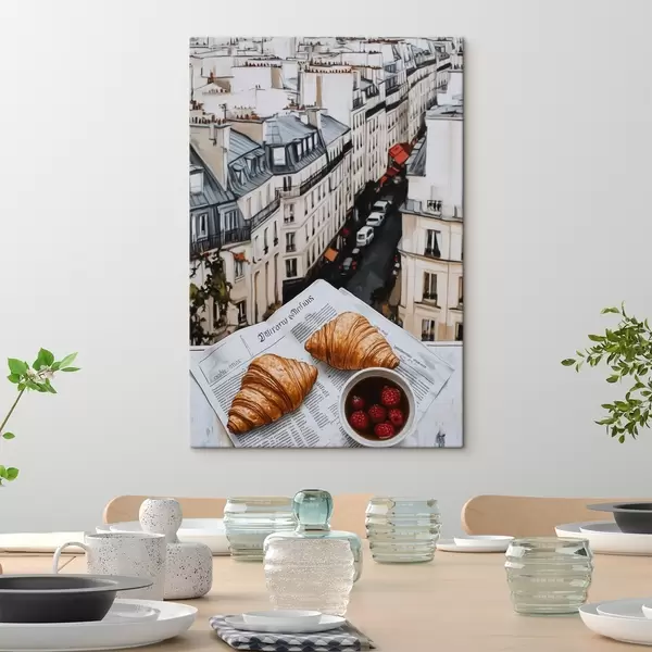 Peinture Café matinal avec croissants, rue de la ville, architecture, style huile Art. s43891