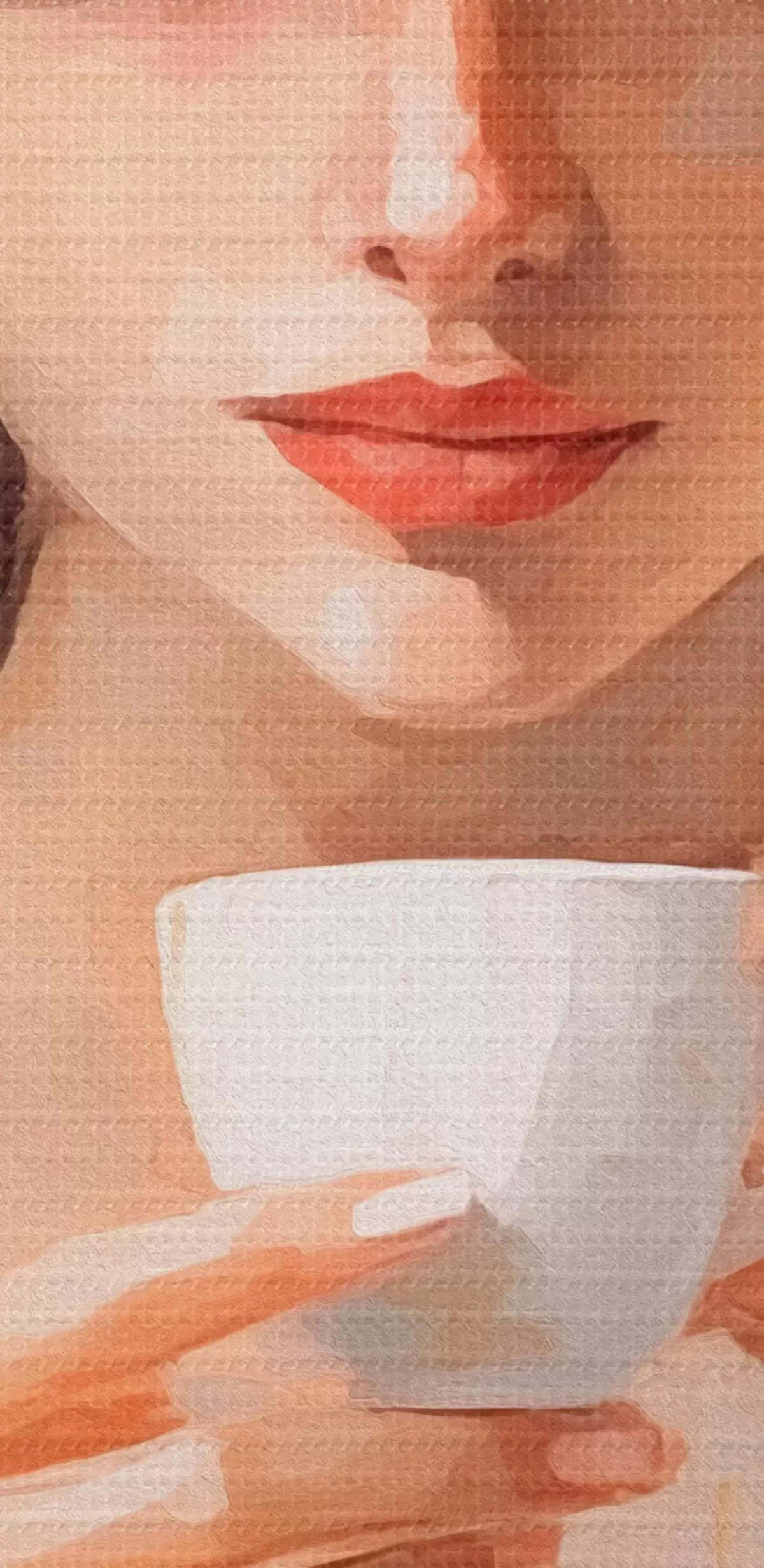 Trois types de matériaux peuvent être commandés : Economic Canvas - matériau dense et durable pour l'impression numérique, identique à la toile de peintre, surface imperméable, reproduction réaliste des détails, matériau à grain moyen. Premium Canvas - la texture ressemble à celle d'une toile de peintre (petits fils entrelacés). Reproduction douce et détaillée de l'image sur une surface mate. Eco-Premium - tissu 100 % coton de haute qualité. Grâce aux fibres naturelles de coton, le matériau est durable et résistant à l'usure. Excellente reproduction des couleurs et des détails.