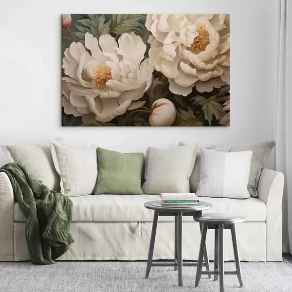 Peinture Pivoines crème parmi les feuilles vertes Art. s43991