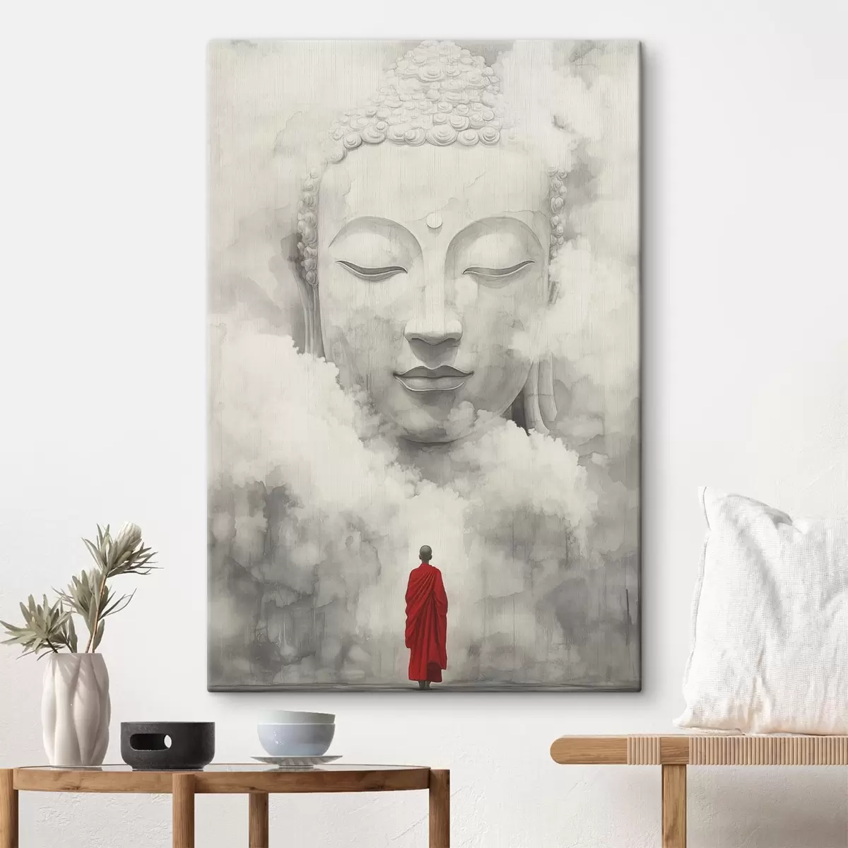 Peinture Bouddhisme, moine en robe rouge, brume, aquarelle Art. s44007