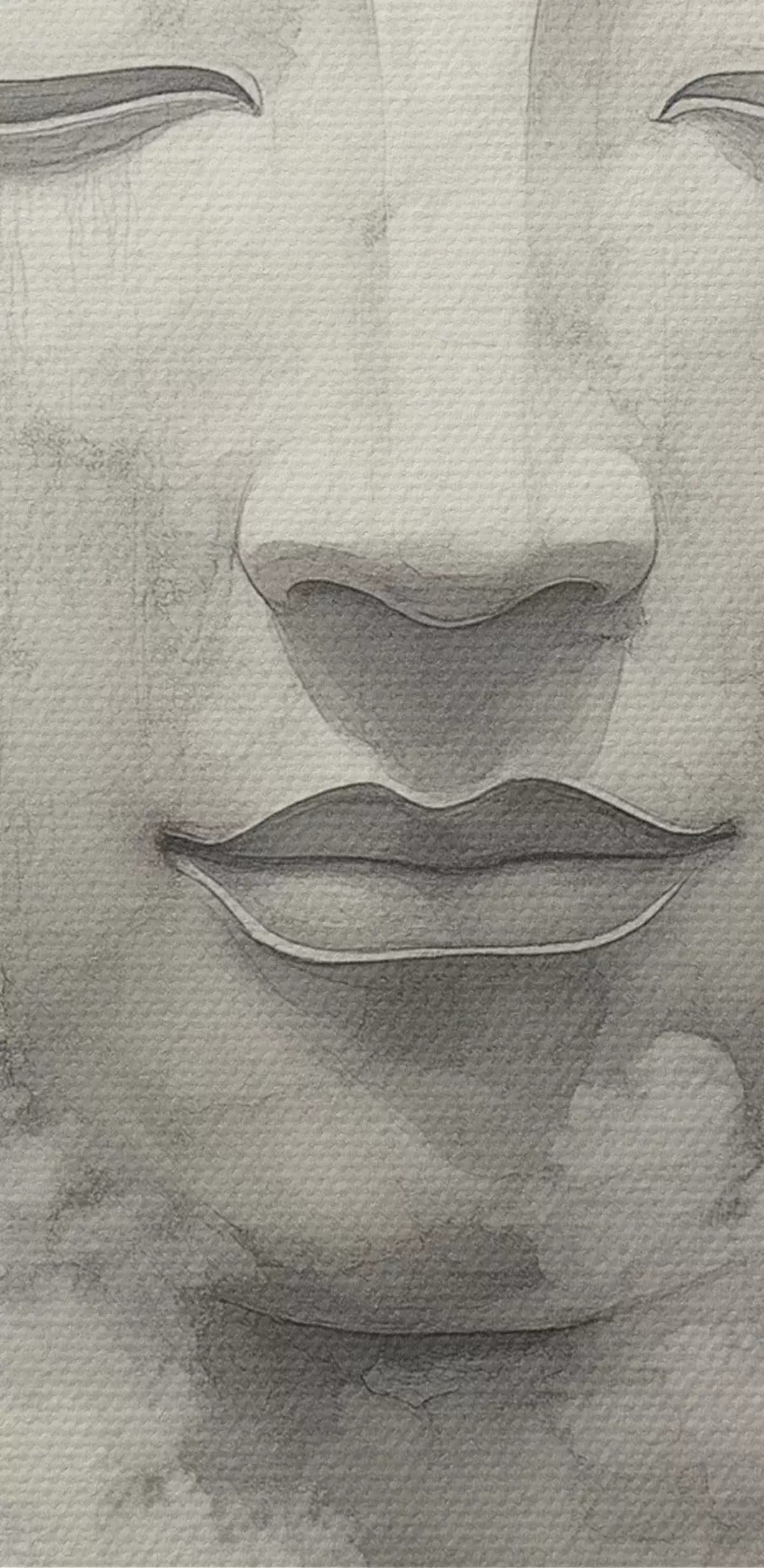 Peintures Bouddhisme, moine en robe rouge, brume, aquarelle s44007