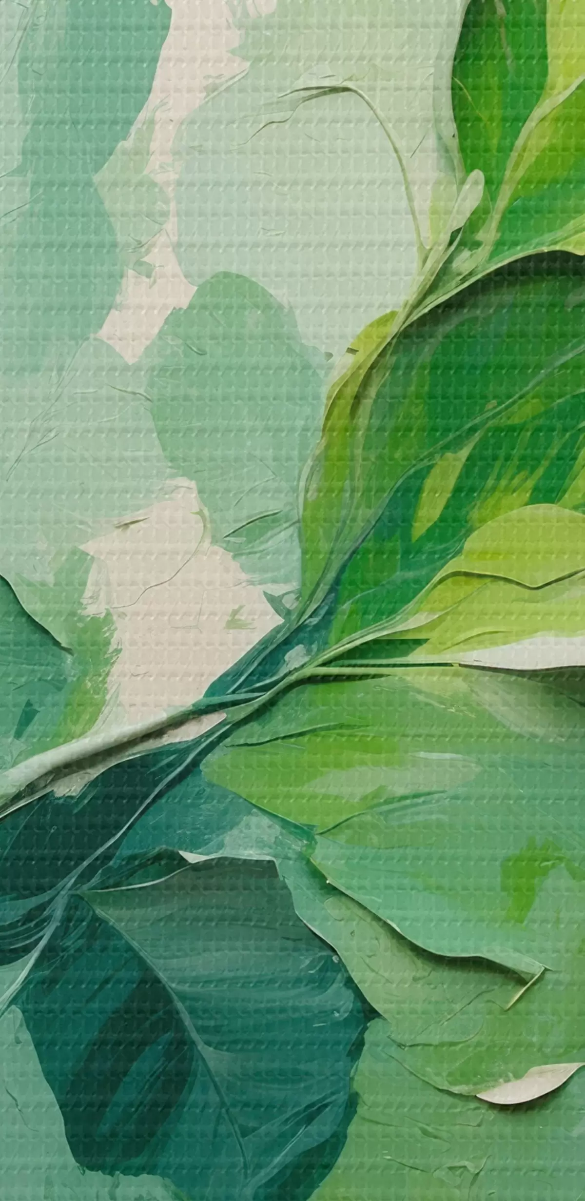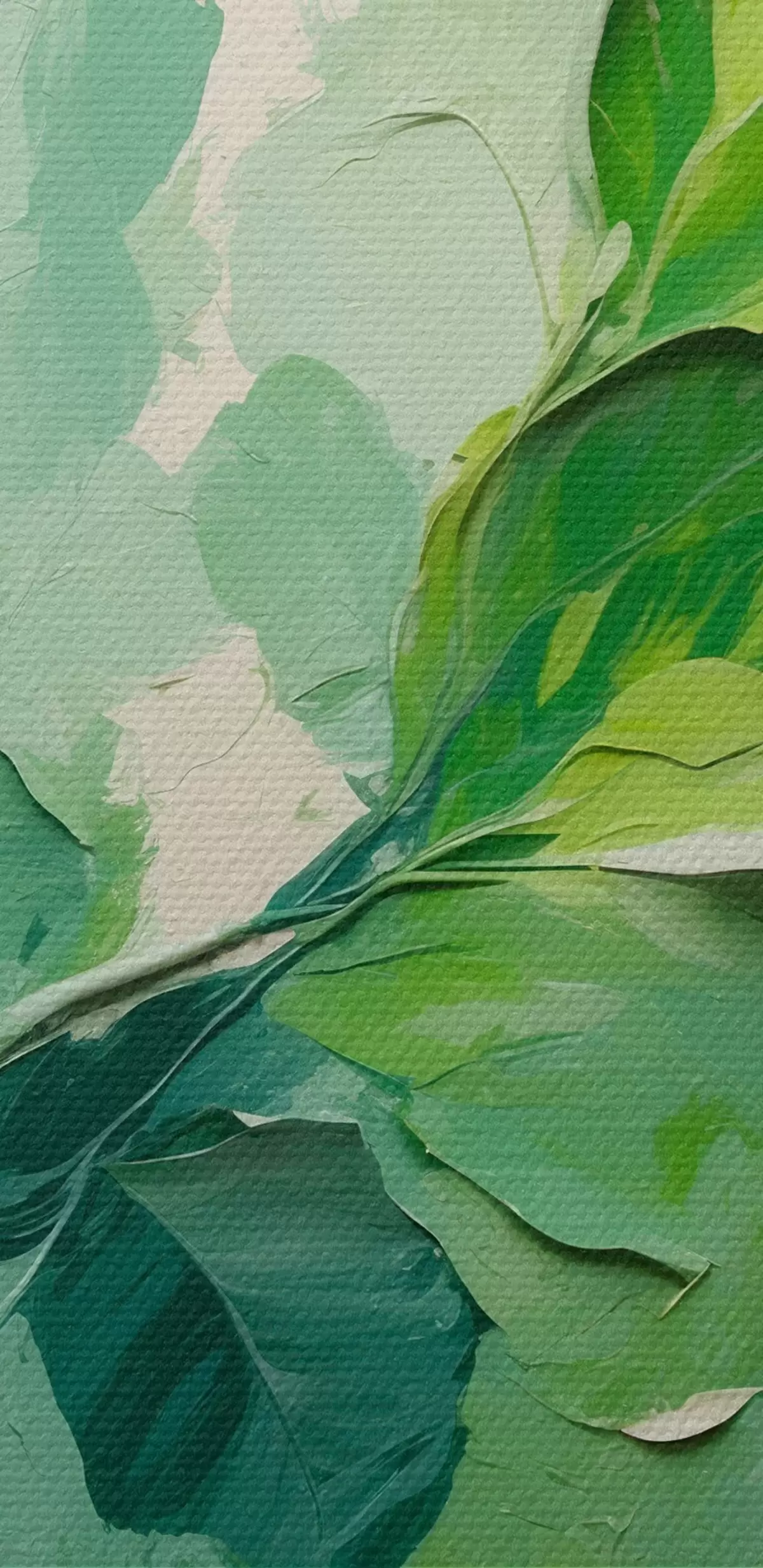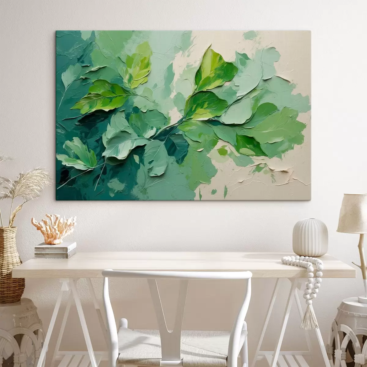 Peinture Branche avec feuilles vertes en peinture à l'huile Art. s44075