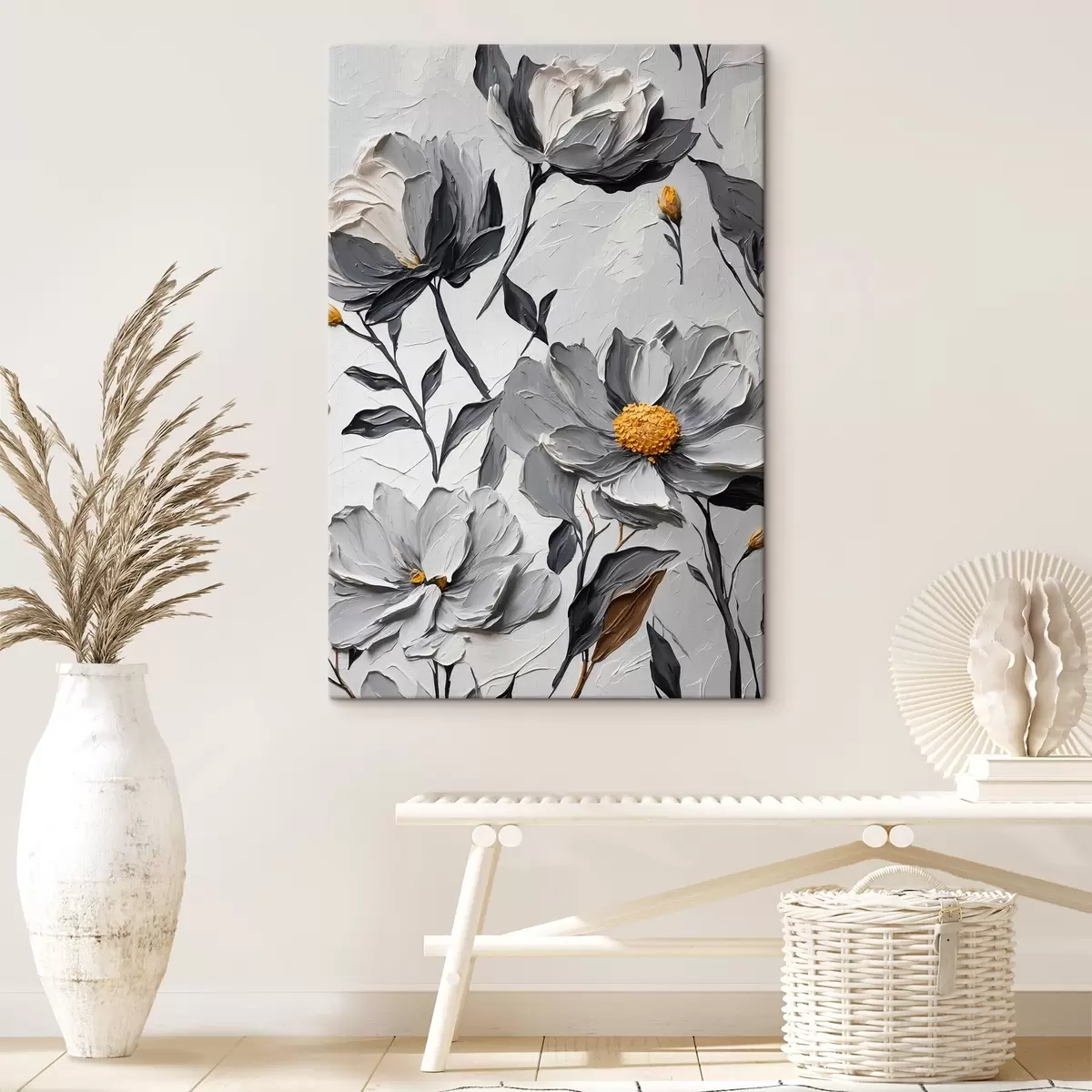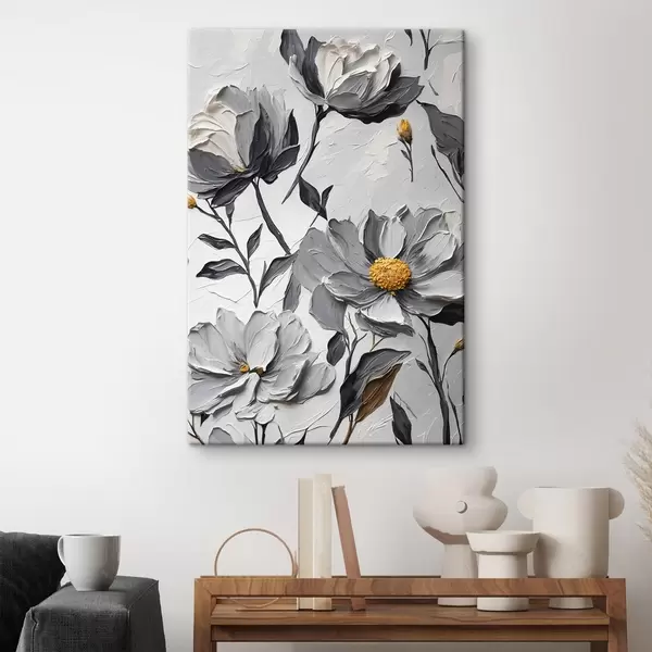 Peinture Fleurs grises sur fond gris dans le style de la peinture à l'huile Art. s44080