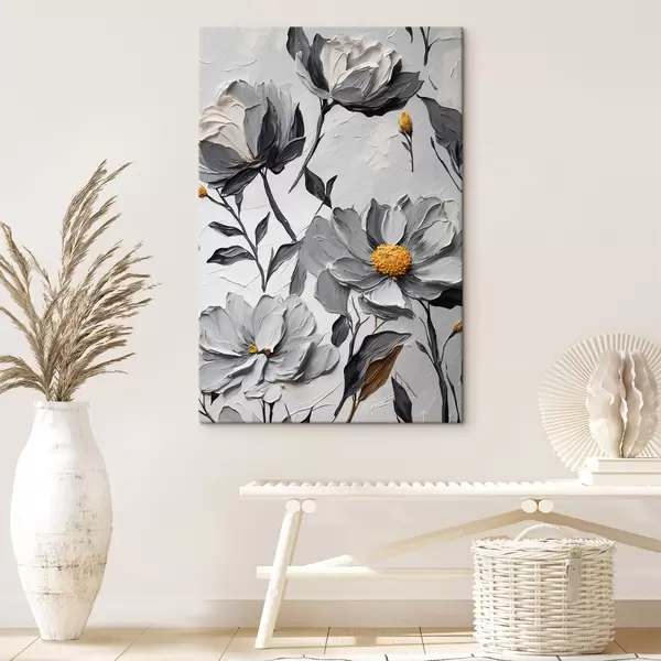 Peintures Fleurs grises sur fond gris dans le style de la peinture à l'huile s44080