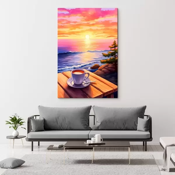 Peinture Tasse de café sur fond de paysage Art. s44105