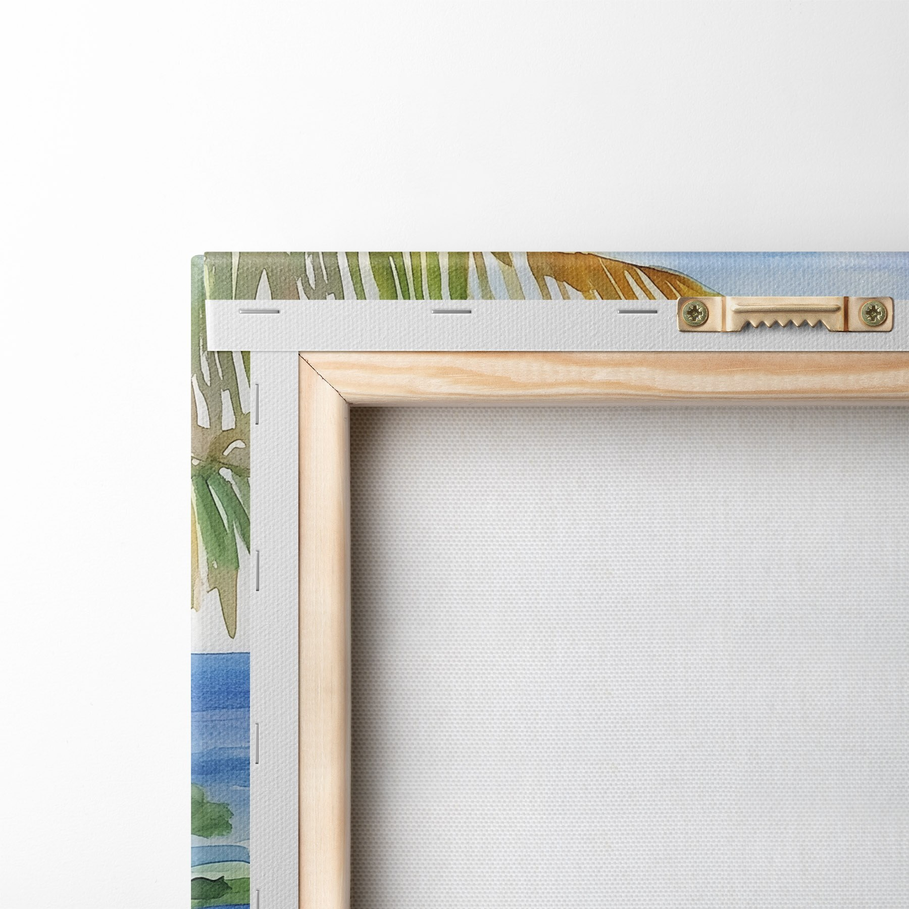 Peintures Plage tropicale, palmiers, fleurs, style aquarelle s44145