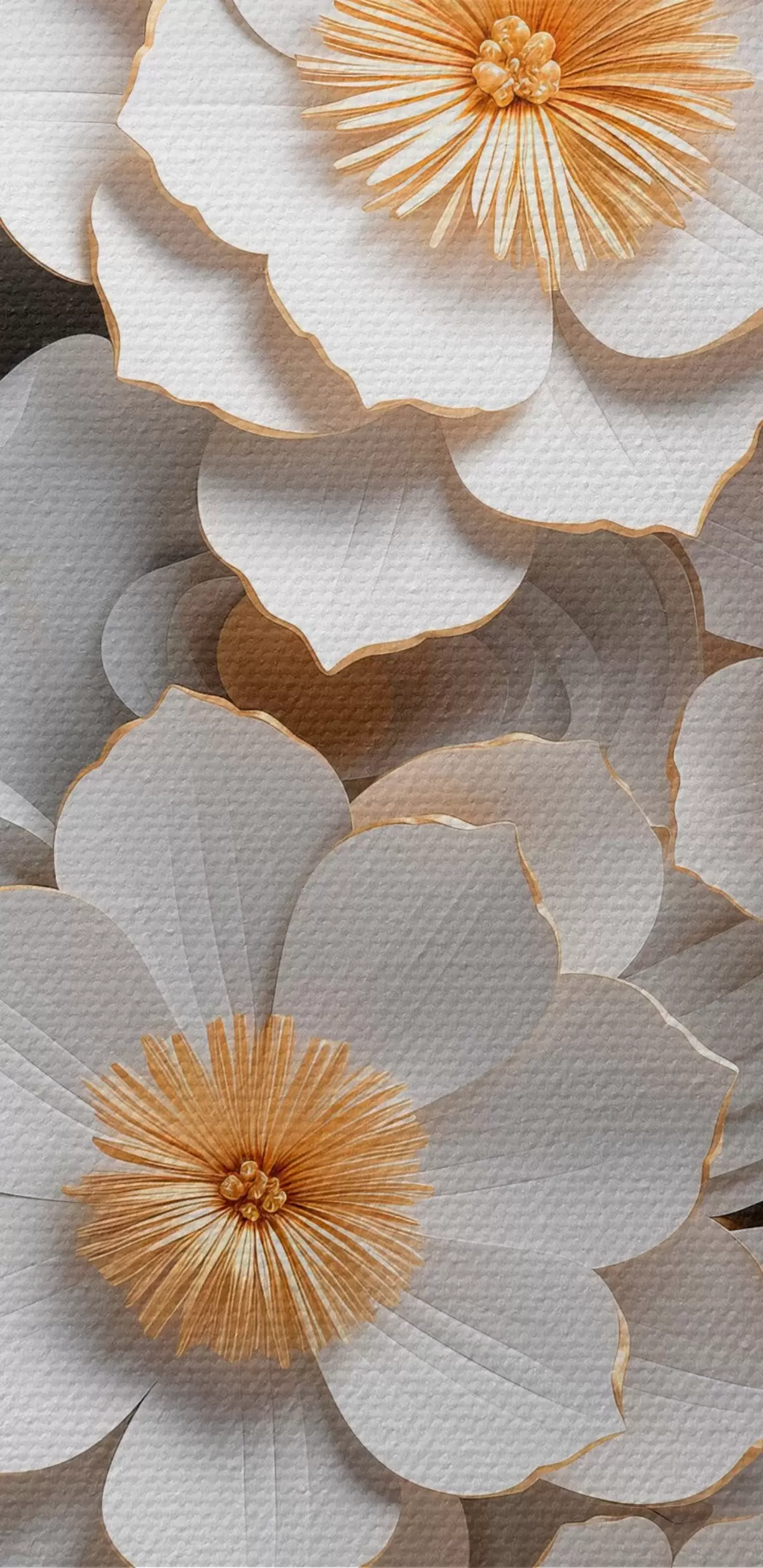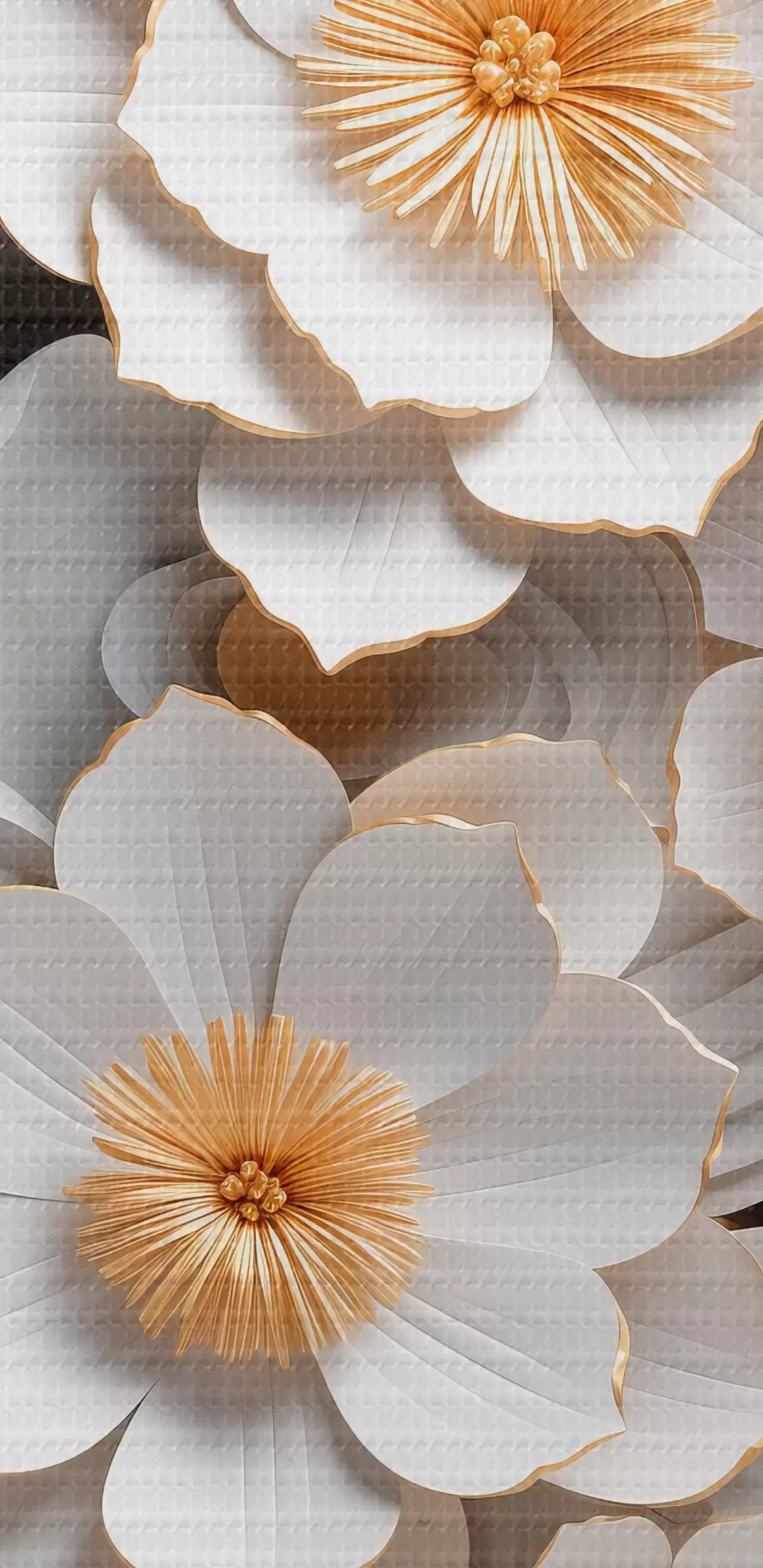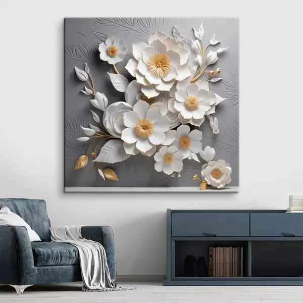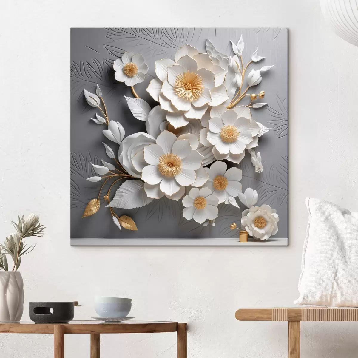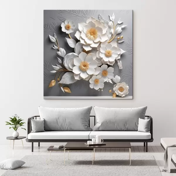 Peintures Fleurs blanches volumineuses sur fond gris en style 3D s44253