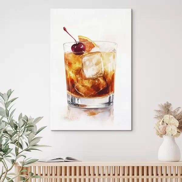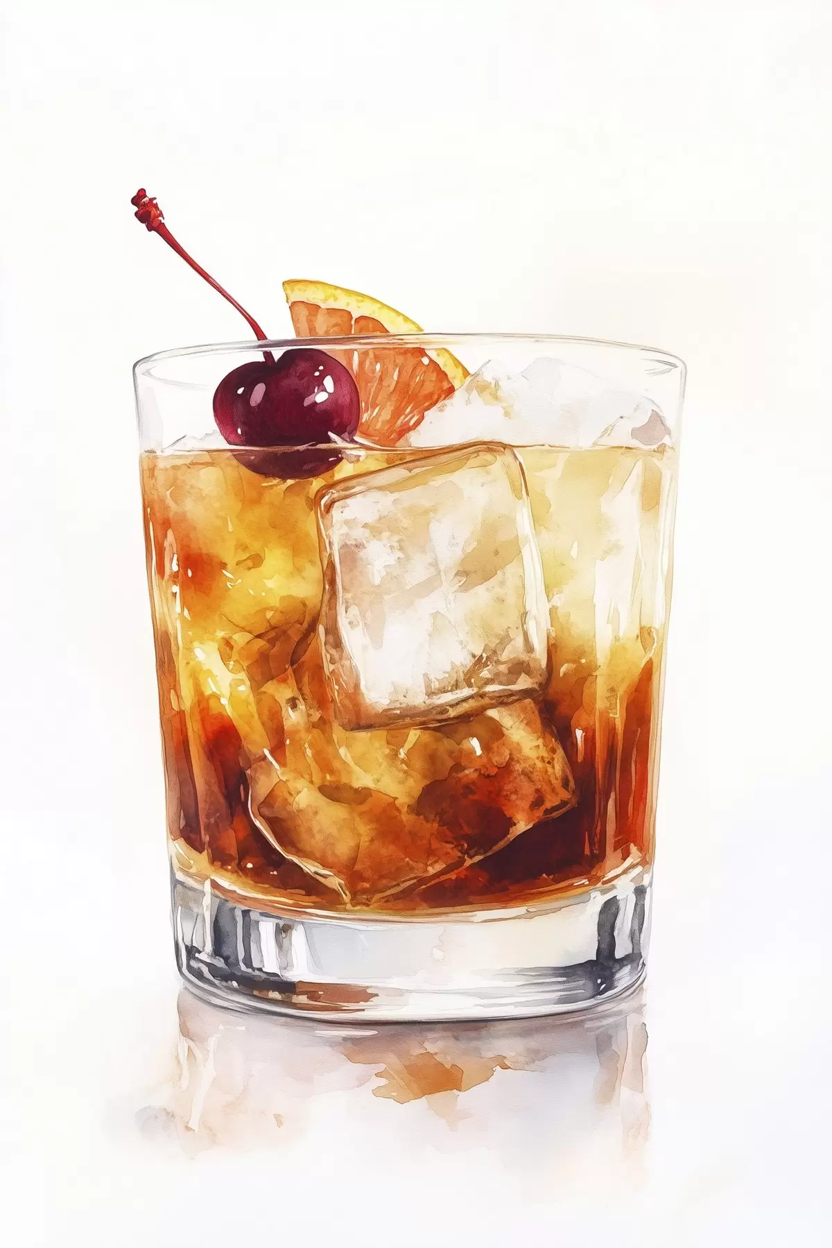 Peinture Cocktail d'orange avec glace et cerise, style aquarelle Art. s44303