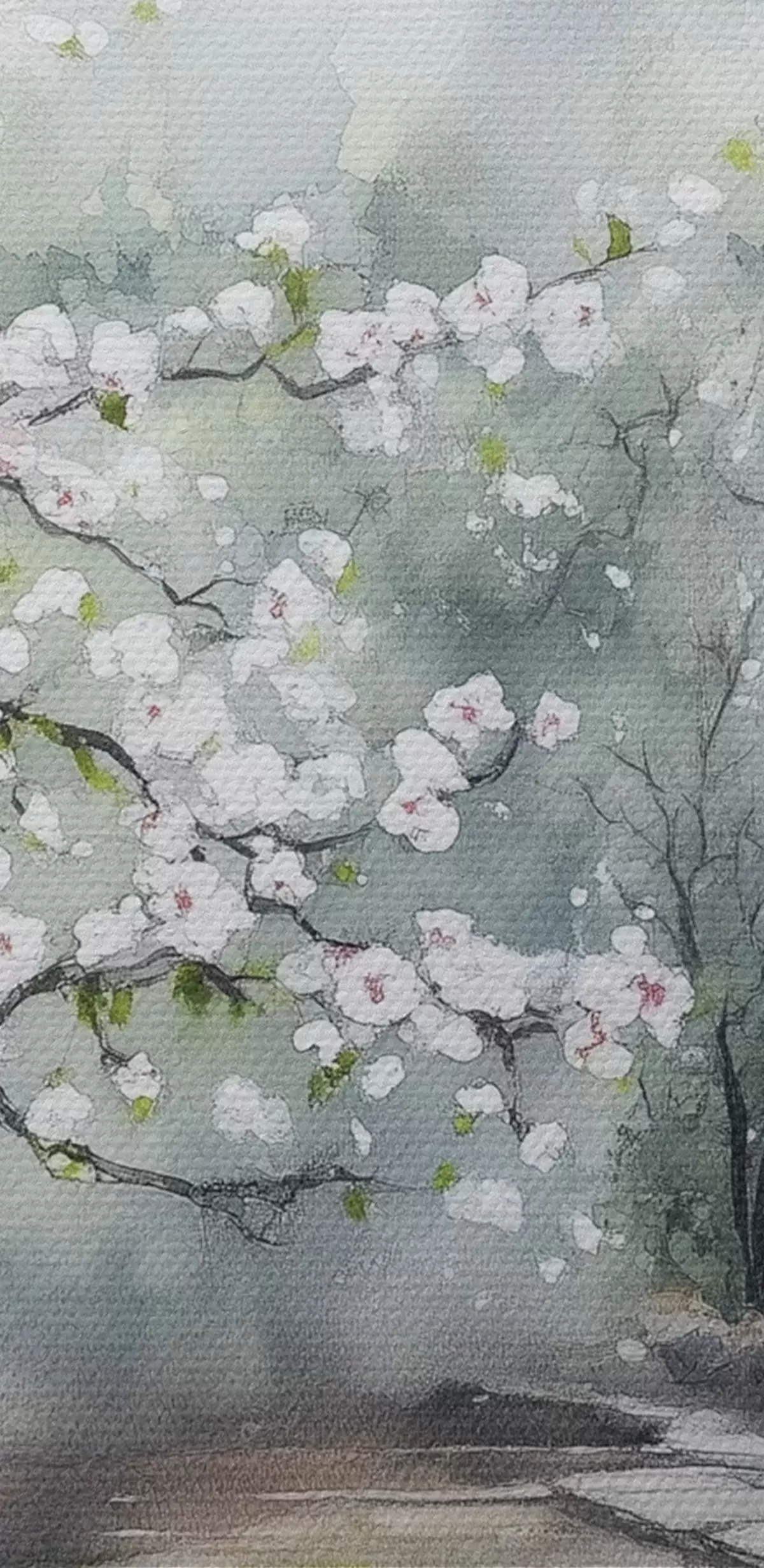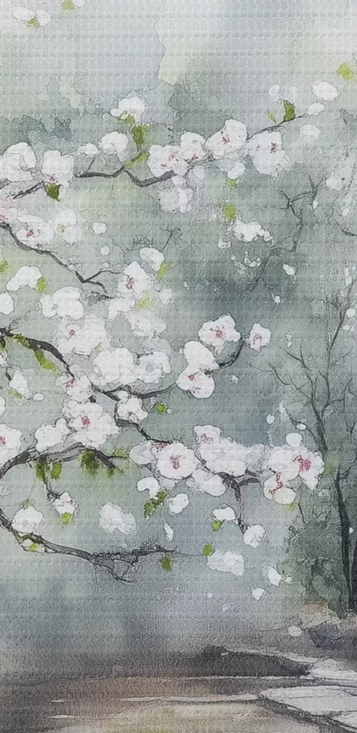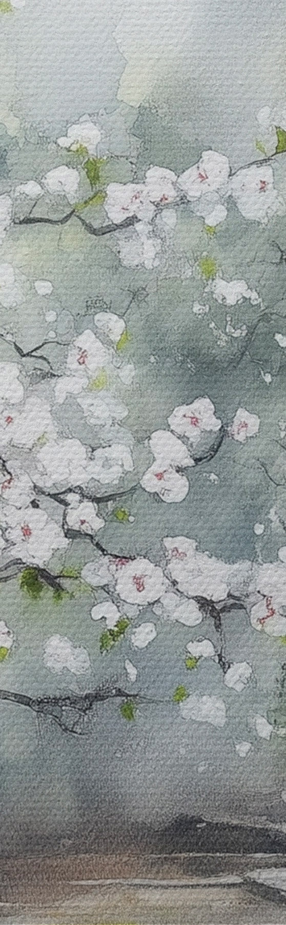 Peintures Jardin japonais avec cerisier et maison, oriental, style aquarelle s44309