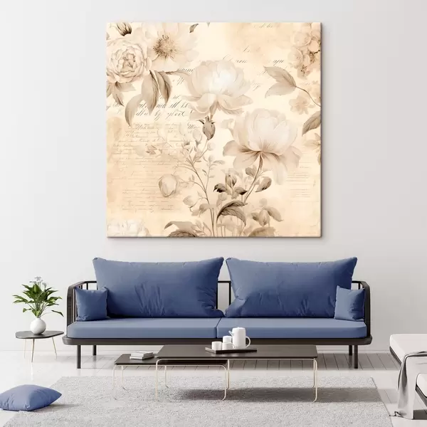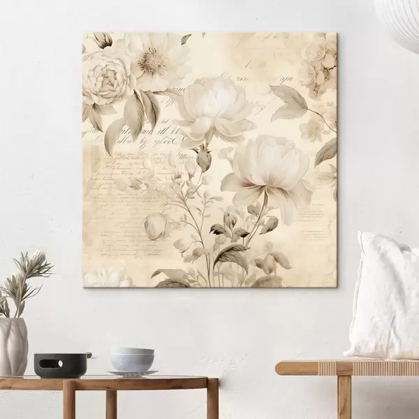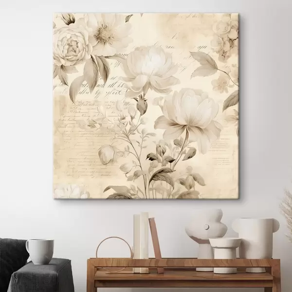 Peinture Composition vintage de fleurs blanc crème Art. s44332