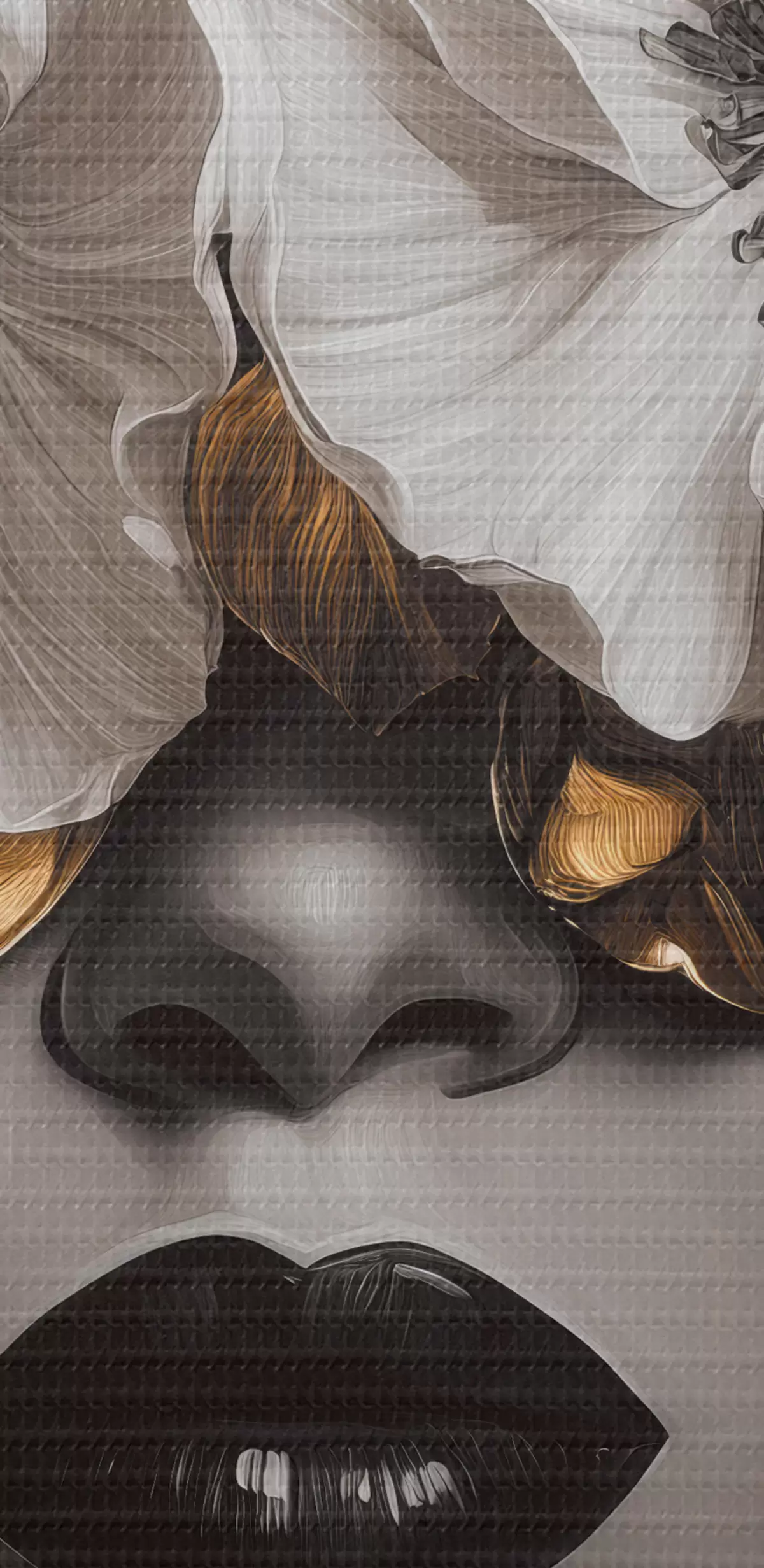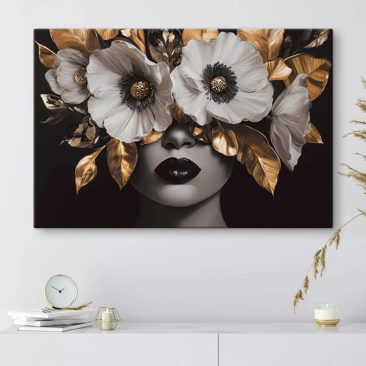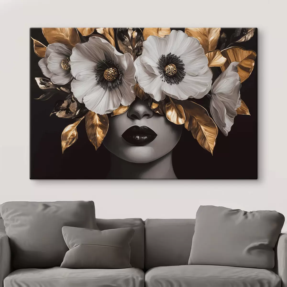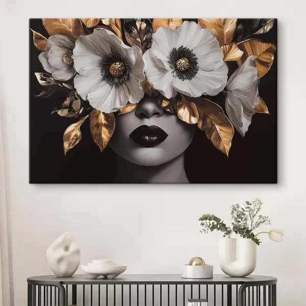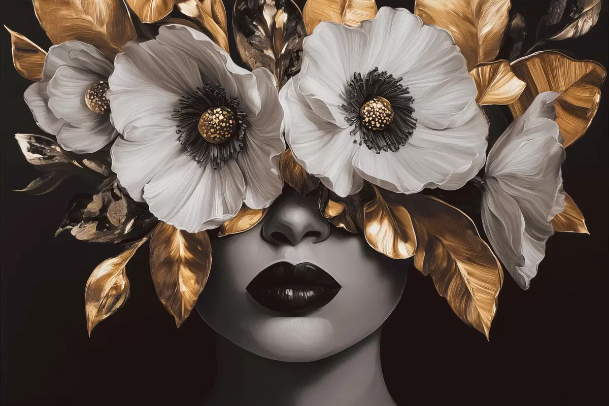 Peintures Portrait semi-abstrait d'une femme avec des fleurs s44365