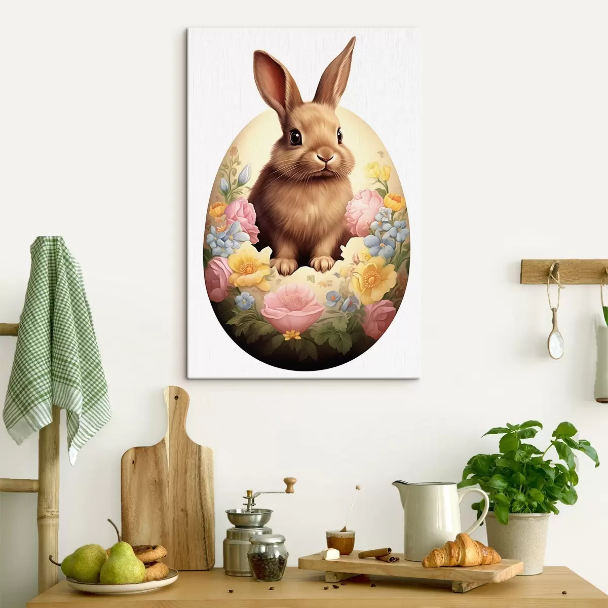 Peinture Lapin dans des fleurs aquarelles Art. s44383