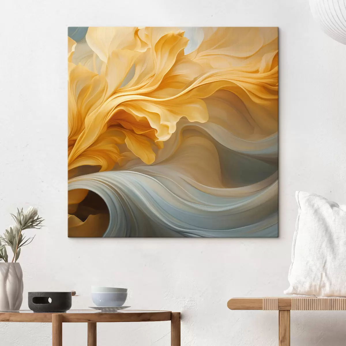Trois types de matériaux peuvent être commandés : Economic Canvas - matériau dense et durable pour l'impression numérique, identique à la toile de peintre, surface imperméable, reproduction réaliste des détails, matériau à grain moyen. Premium Canvas - la texture ressemble à celle d'une toile de peintre (petits fils entrelacés). Reproduction douce et détaillée de l'image sur une surface mate. Eco-Premium - tissu 100 % coton de haute qualité. Grâce aux fibres naturelles de coton, le matériau est durable et résistant à l'usure. Excellente reproduction des couleurs et des détails.