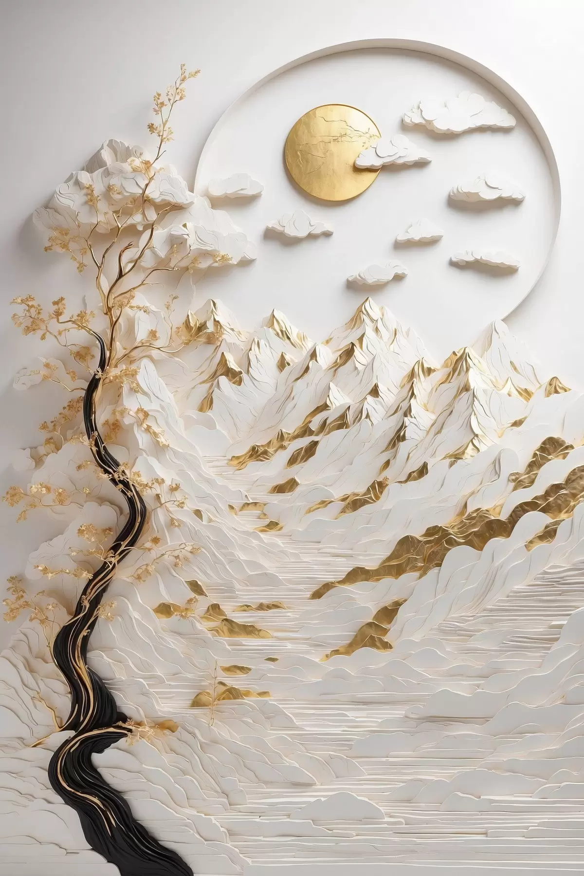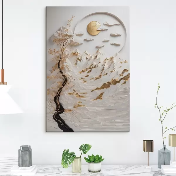 Peinture Montagnes abstraites et soleil Art. s44428