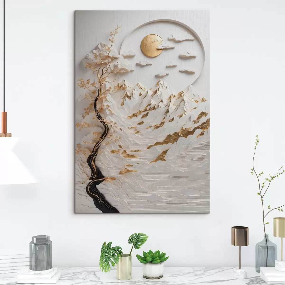 Vous pouvez suspendre le tableau à des vis. Pour ce faire, nous incluons des fixations avec nos tableaux, ce qui facilitera l'accrochage du tableau.