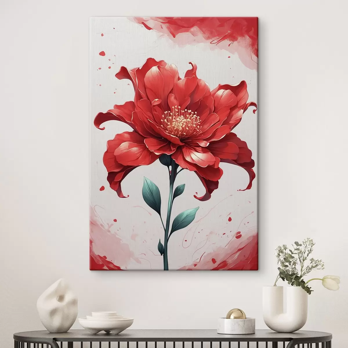 Peinture Fleur rouge sur fond blanc-rouge Art. s44442