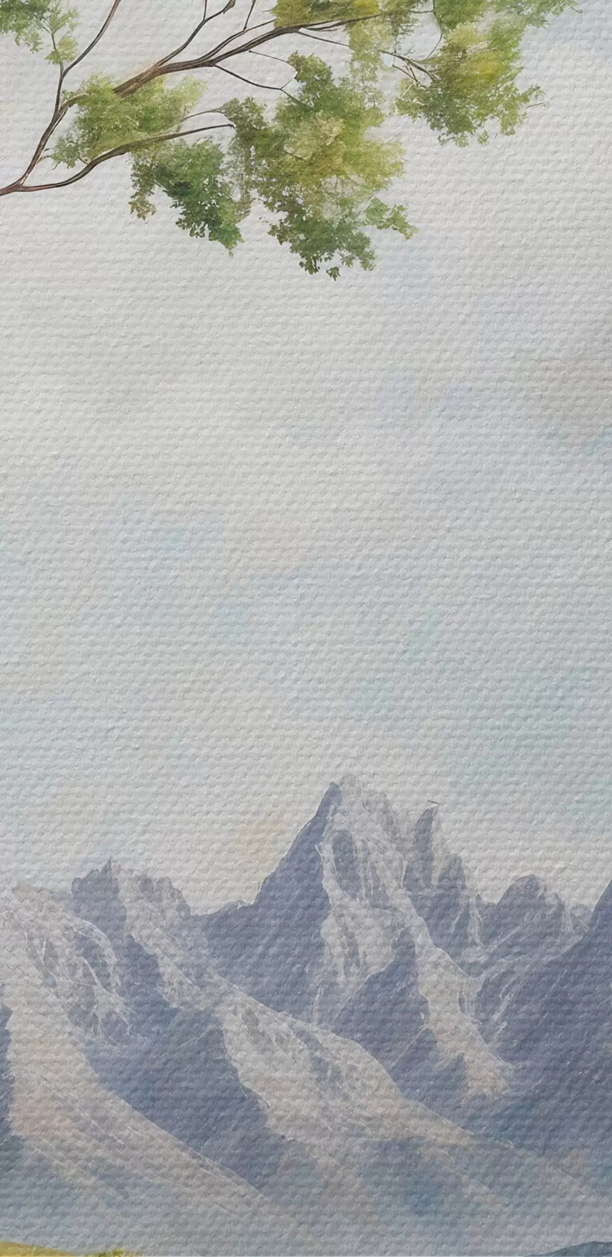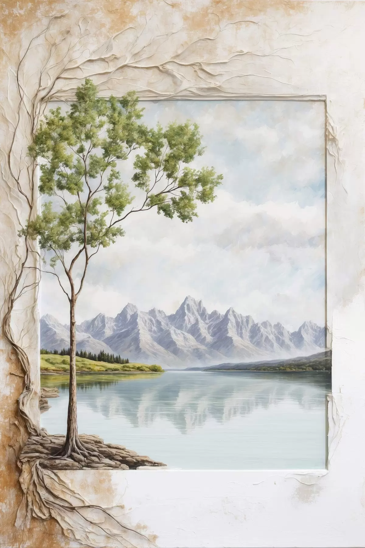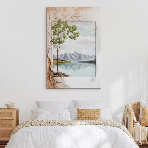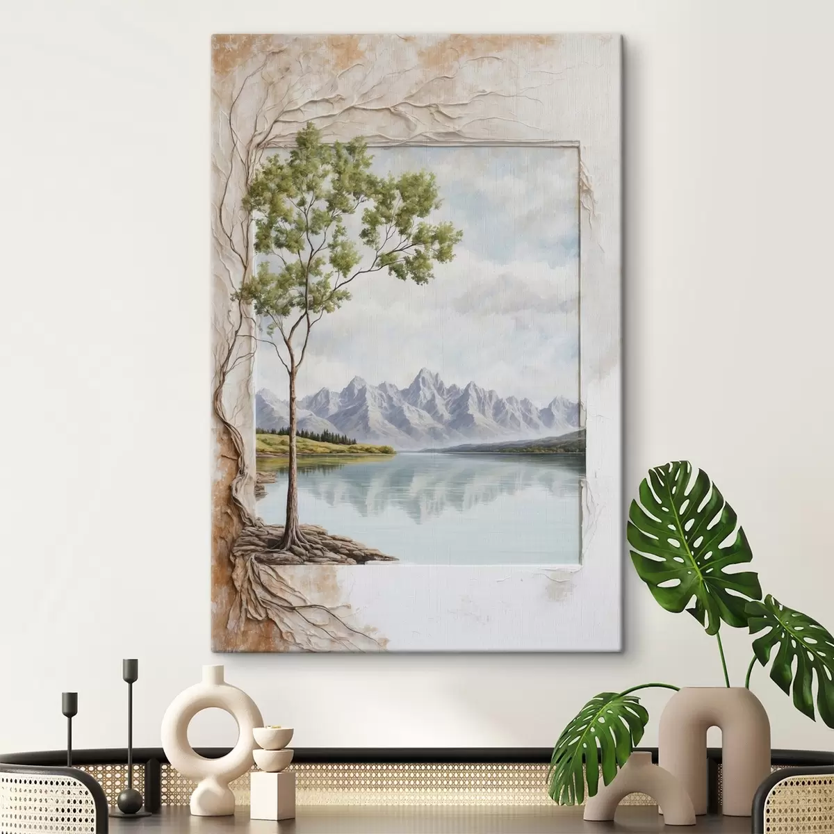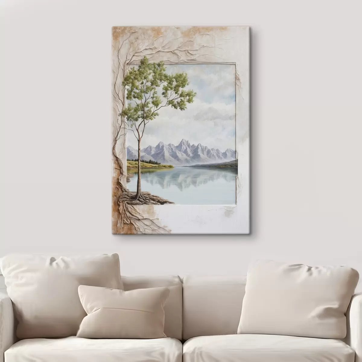 Peinture Vue sur le lac et les montagnes enneigées dans le cadre Art. s44458