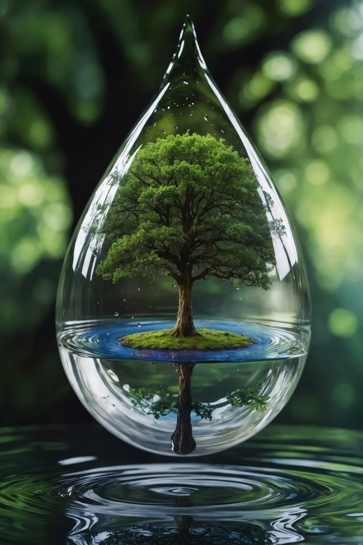 Peinture Goutte d'eau avec réflexion sur l'arbre Art. s44480