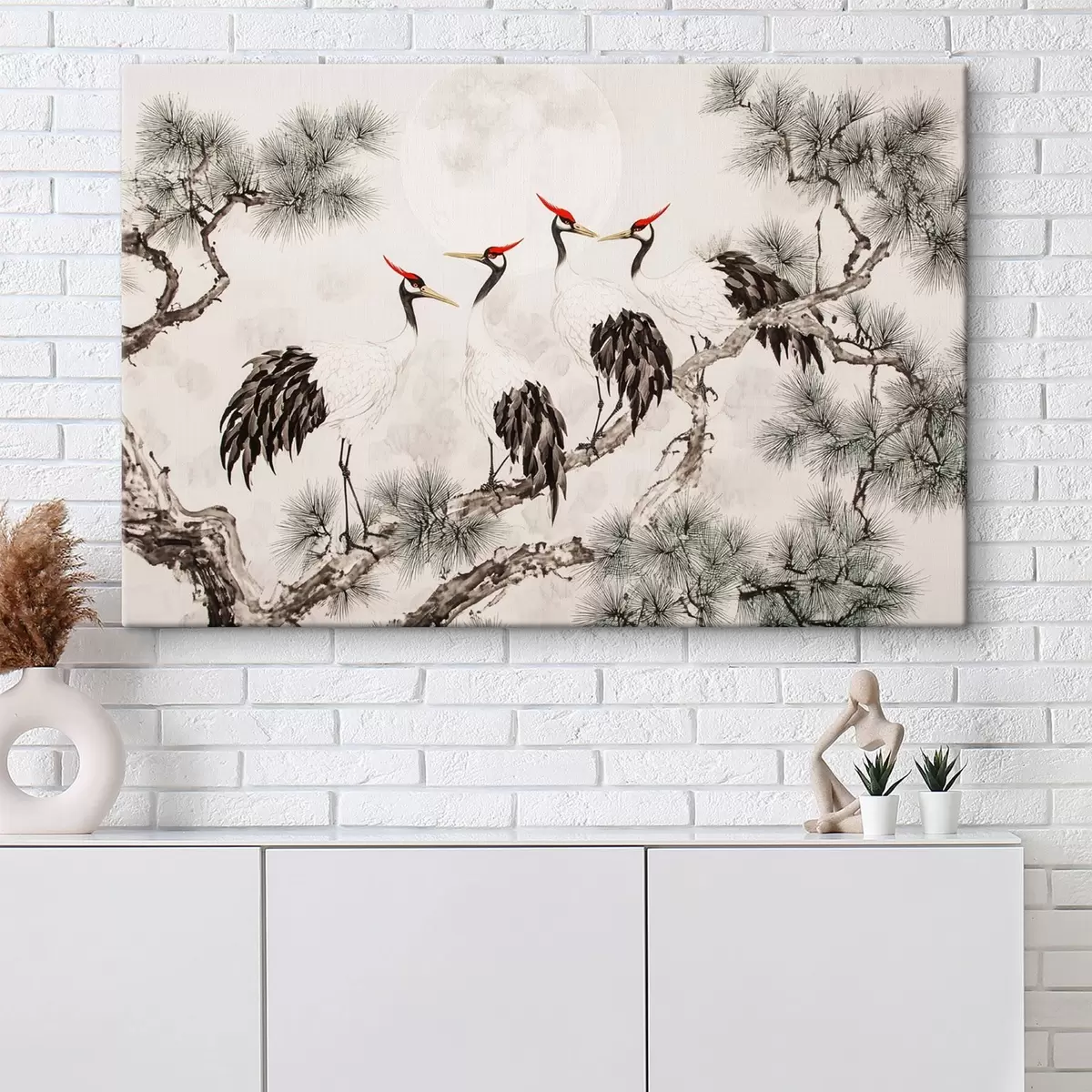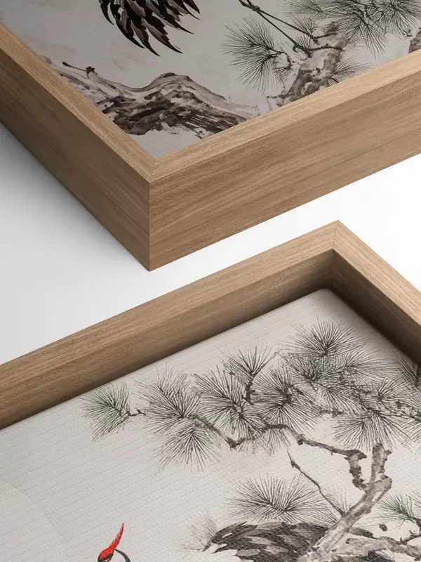 Peinture Art chinois avec grues et pins, style oriental, nature Art. s44503