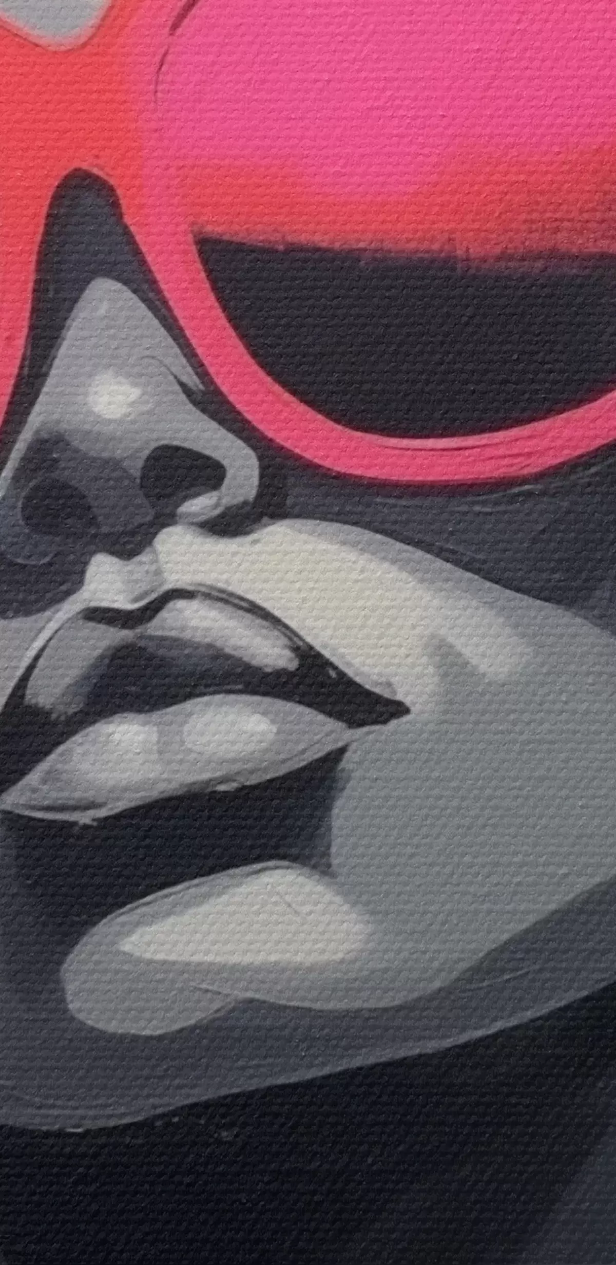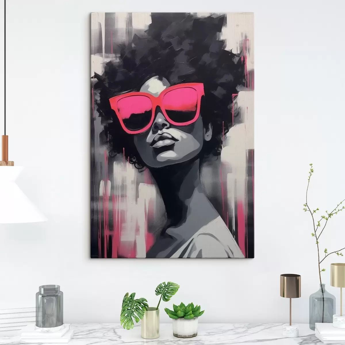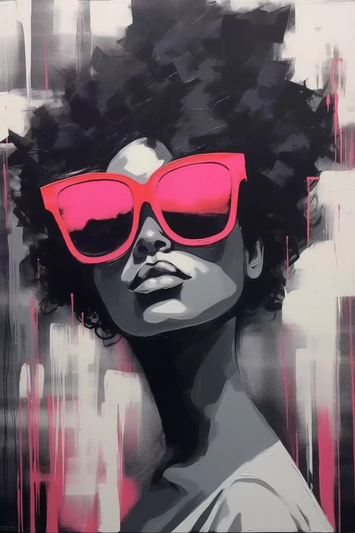Peinture Fille avec des lunettes roses, style noir et blanc Art. s44624