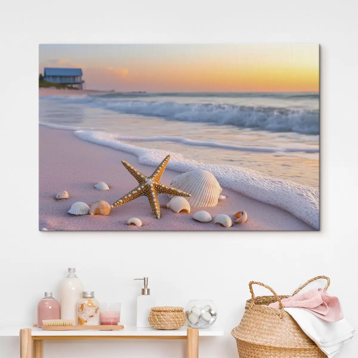 Peinture Côte maritime avec étoiles de mer, coquillages et vagues Art. s44714