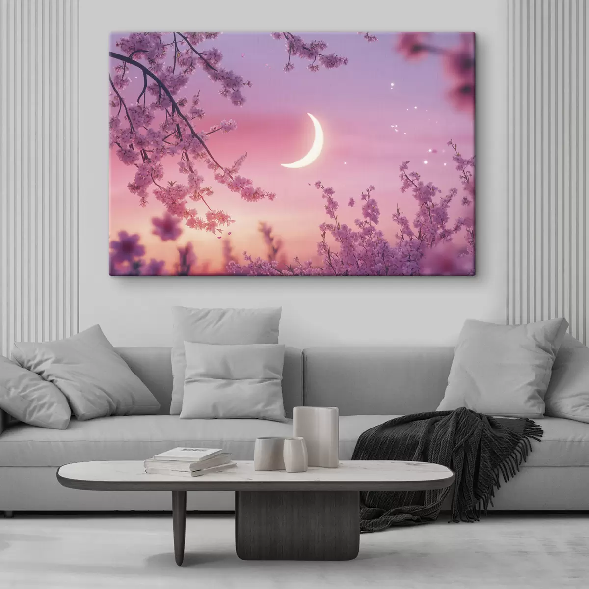 Peintures Fleur de cerisier, ciel rose avec lune brillante, réalisme s44715