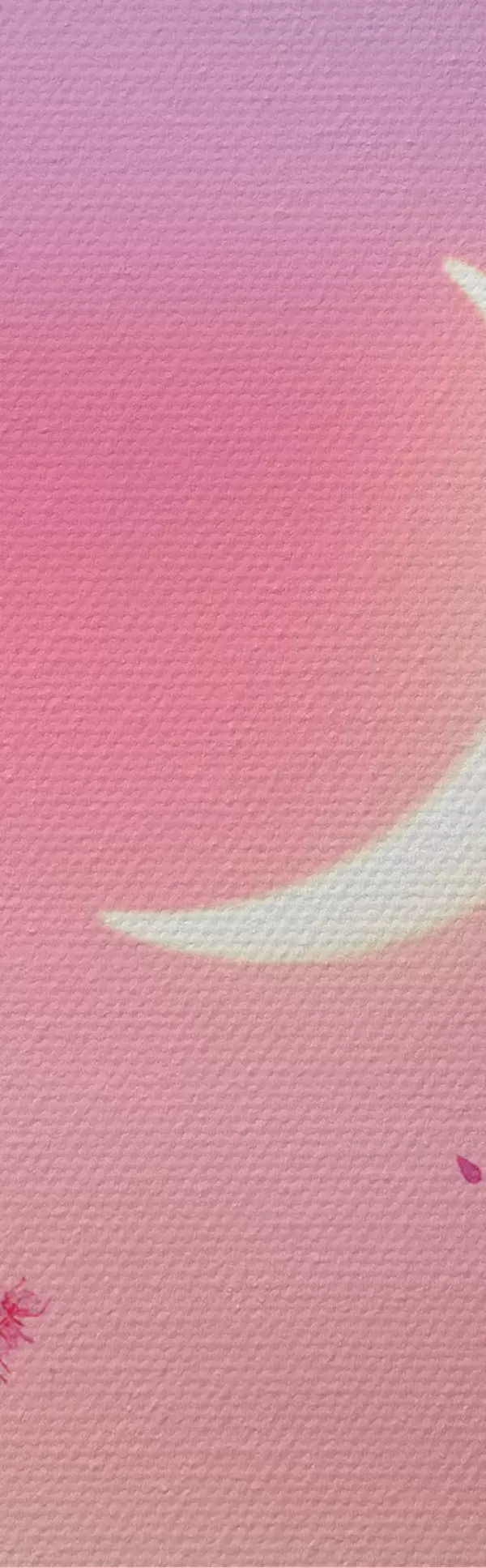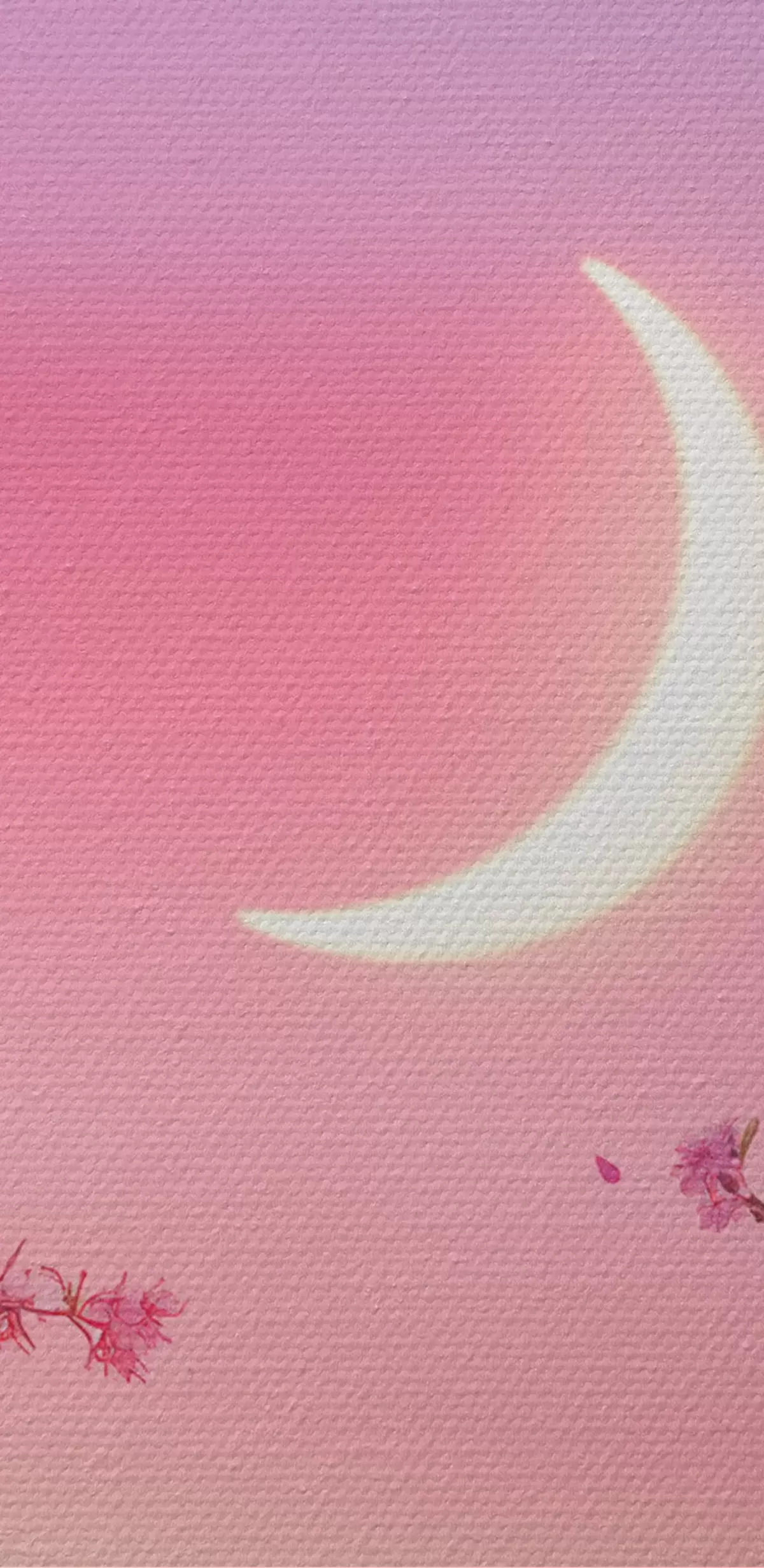 Peinture Fleur de cerisier, ciel rose avec lune brillante, réalisme Art. s44715