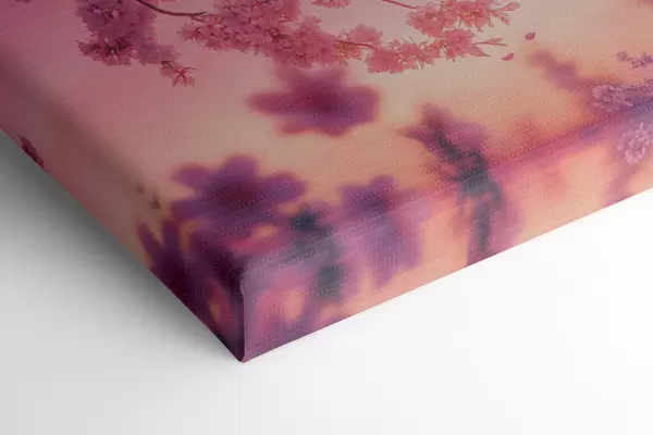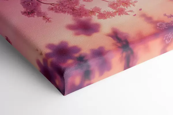 Peinture Fleur de cerisier, ciel rose avec lune brillante, réalisme Art. s44715