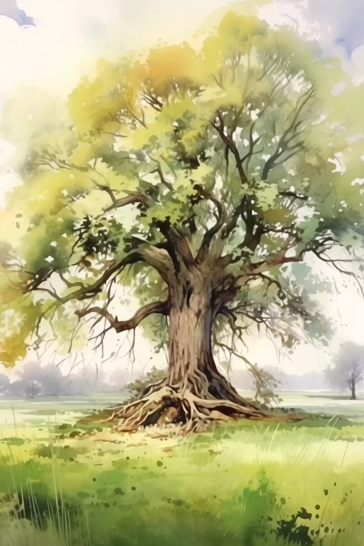 Peinture Un vieil arbre aux racines étendues Art. s44731