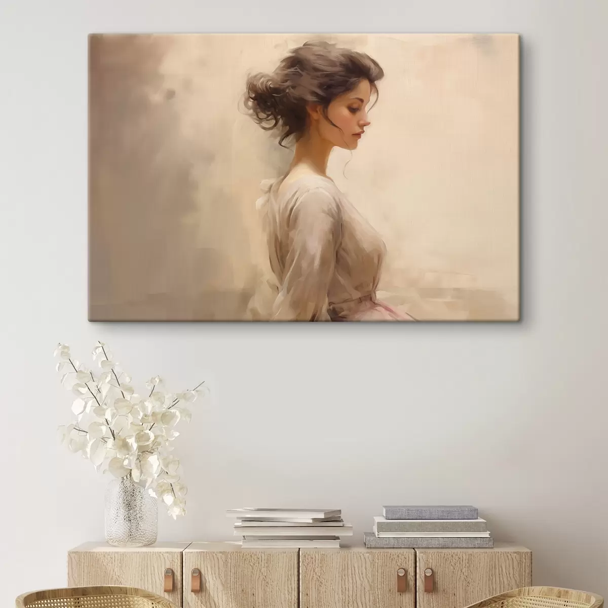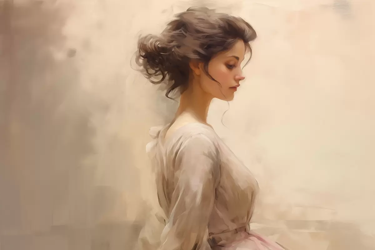 Peinture Douceur d'une femme sur un fond clair Art. s44752