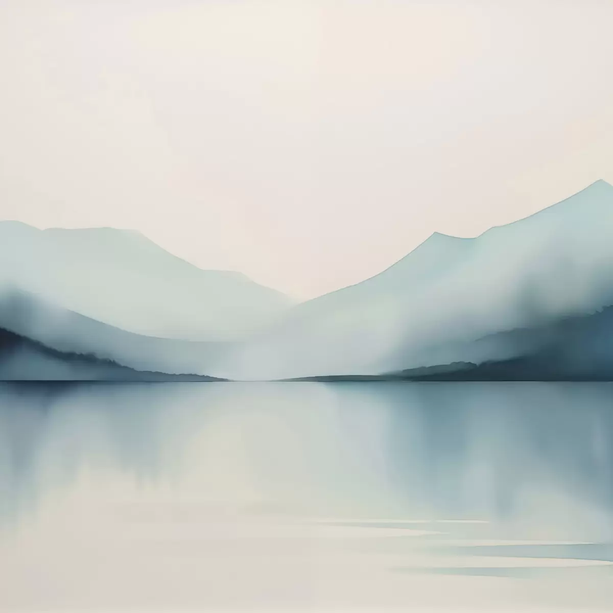 Peinture Montagnes derrière le lac imitation d'aquarelle Art. s44764