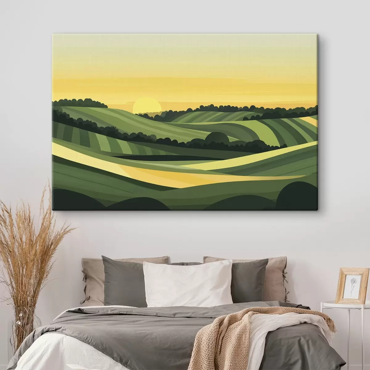 Peintures Paysages abstraits avec collines et coucher de soleil s44785